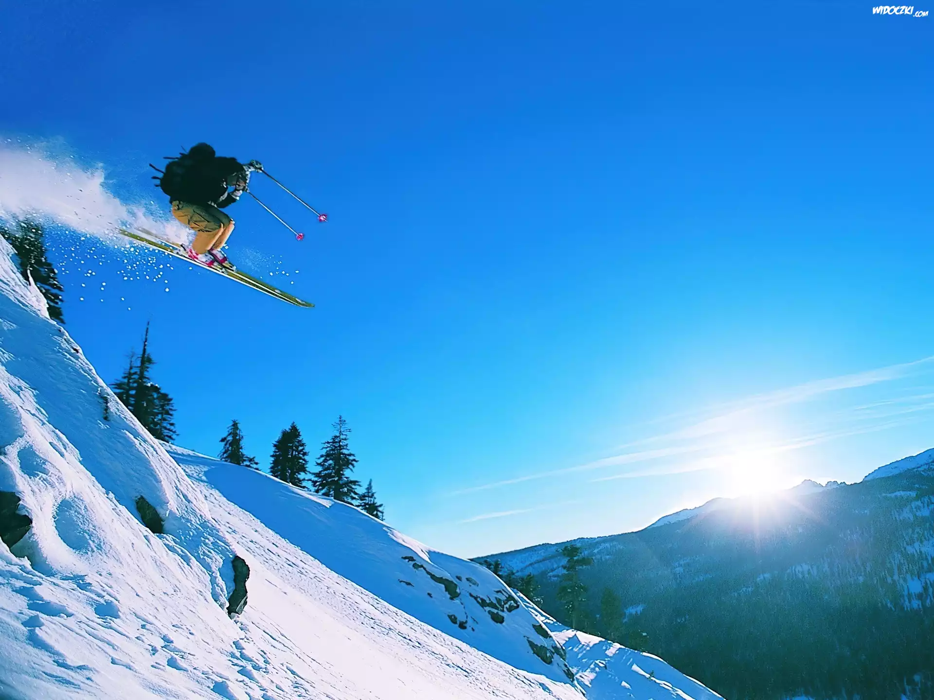 Zdjęcia, Góry, Śnieg, Narciarz, Słońce