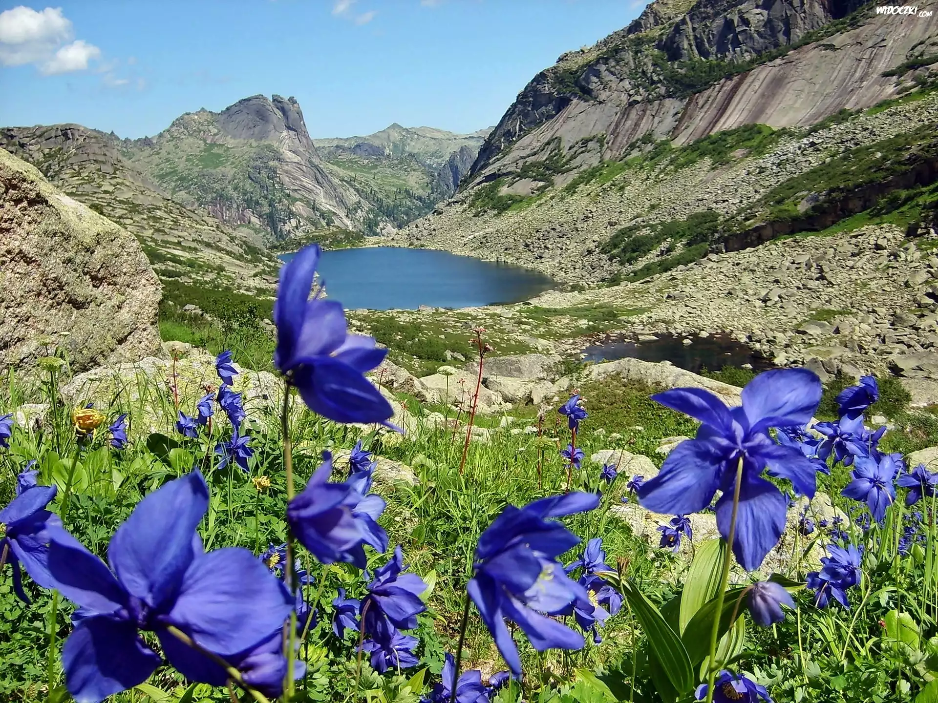 Zdjęcia, Góry, Jezioro, Łąka, Niebieskie, Kwiaty