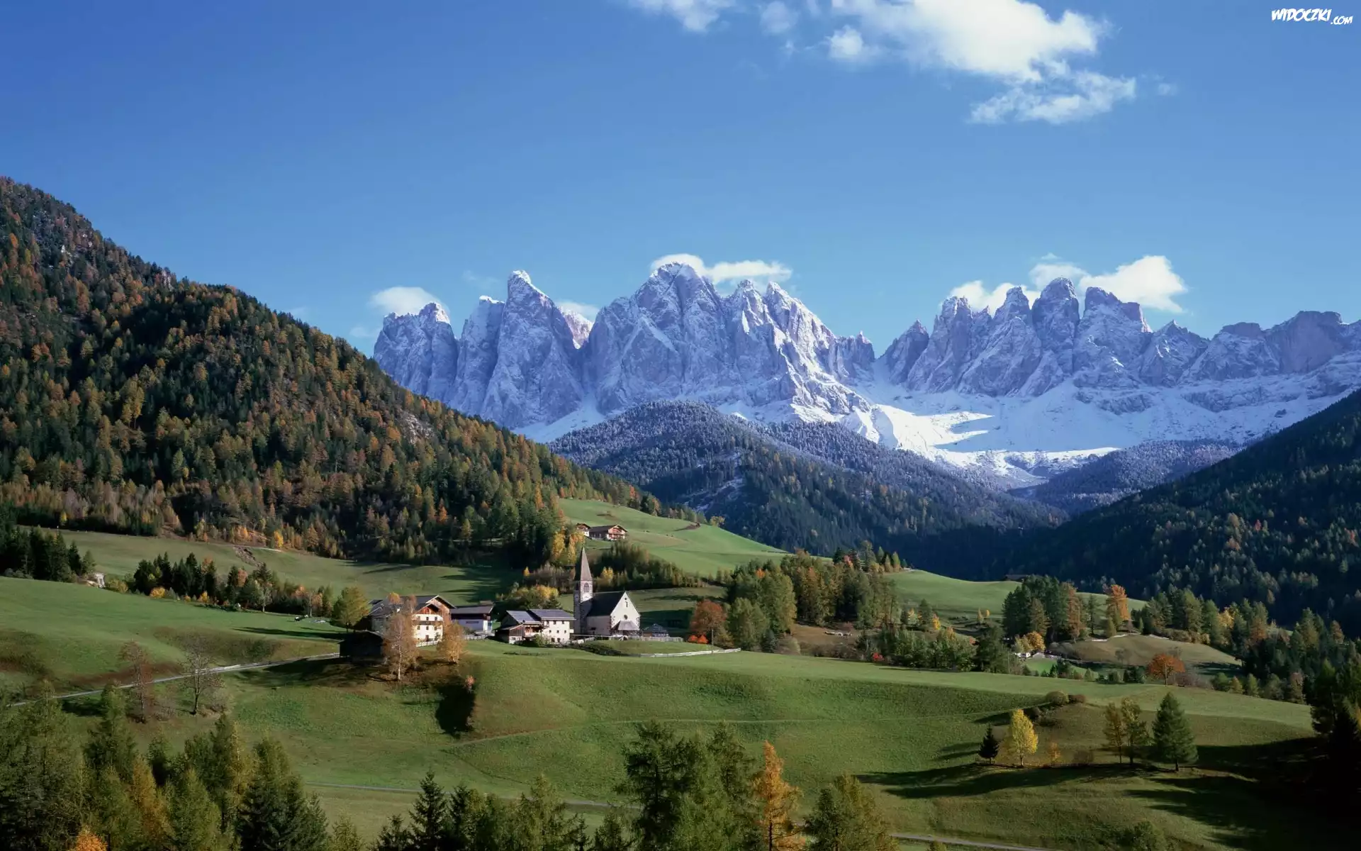 Zdjęcia, Góry, Łąki, Niebo, Kościółek