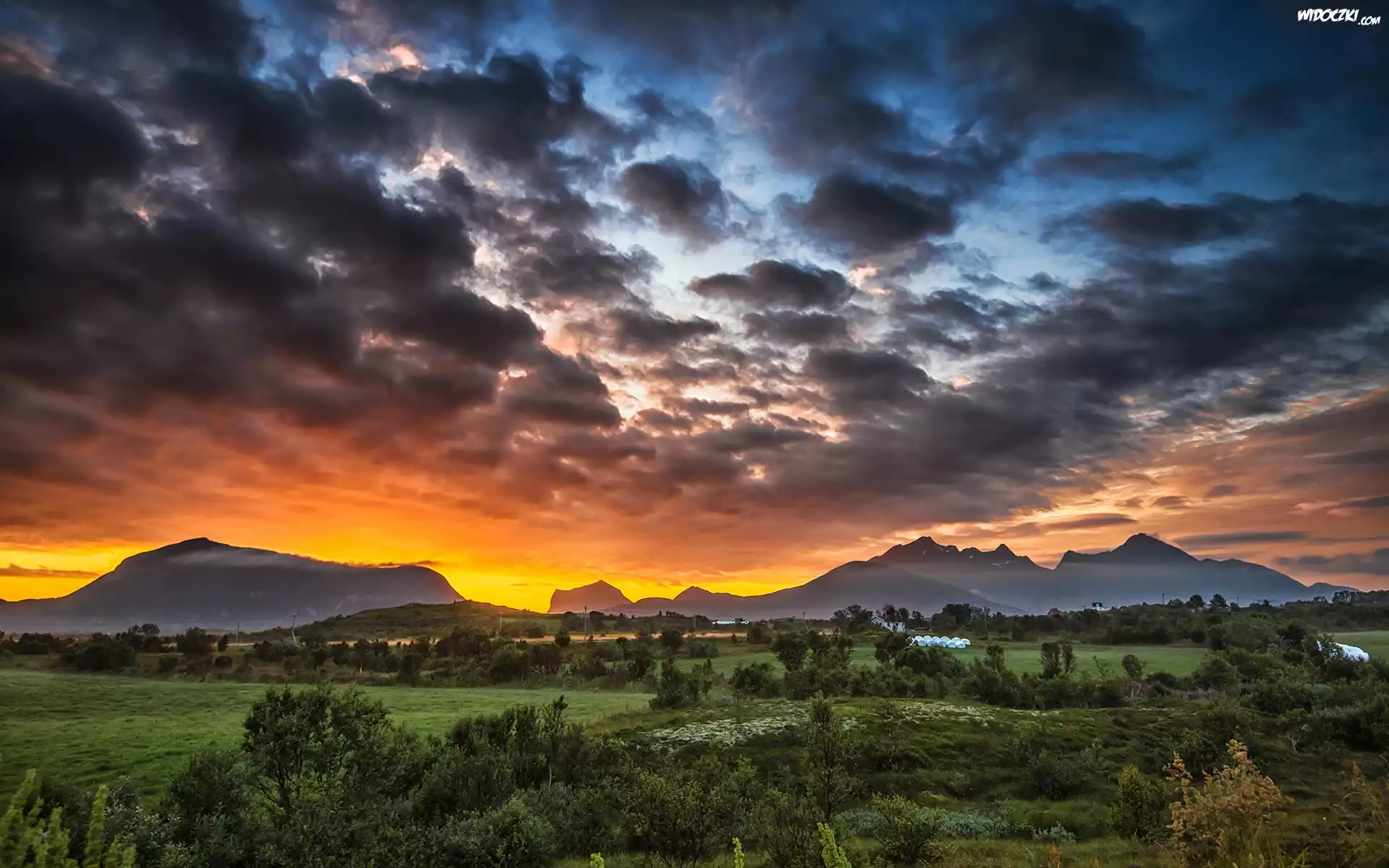 Zdjęcia, Góry, Chmury, Niebo, Drzewa