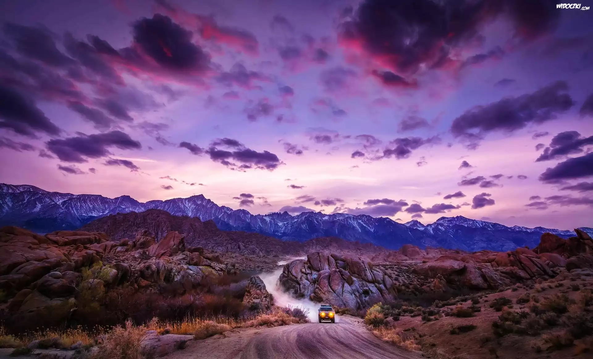 Zdjęcia, Góry, droga, Niebo, Samochód