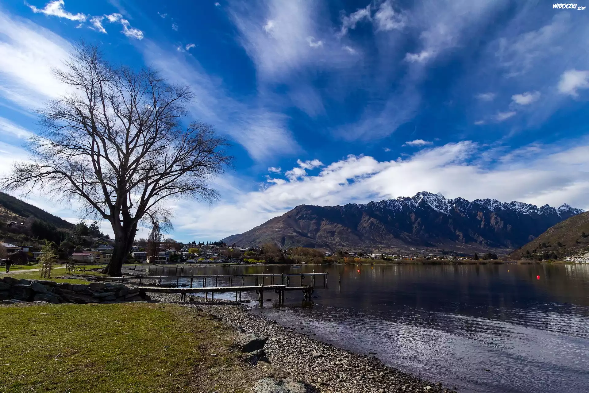 Zdjęcia, Góry, Jezioro, Niebo, Drzewa