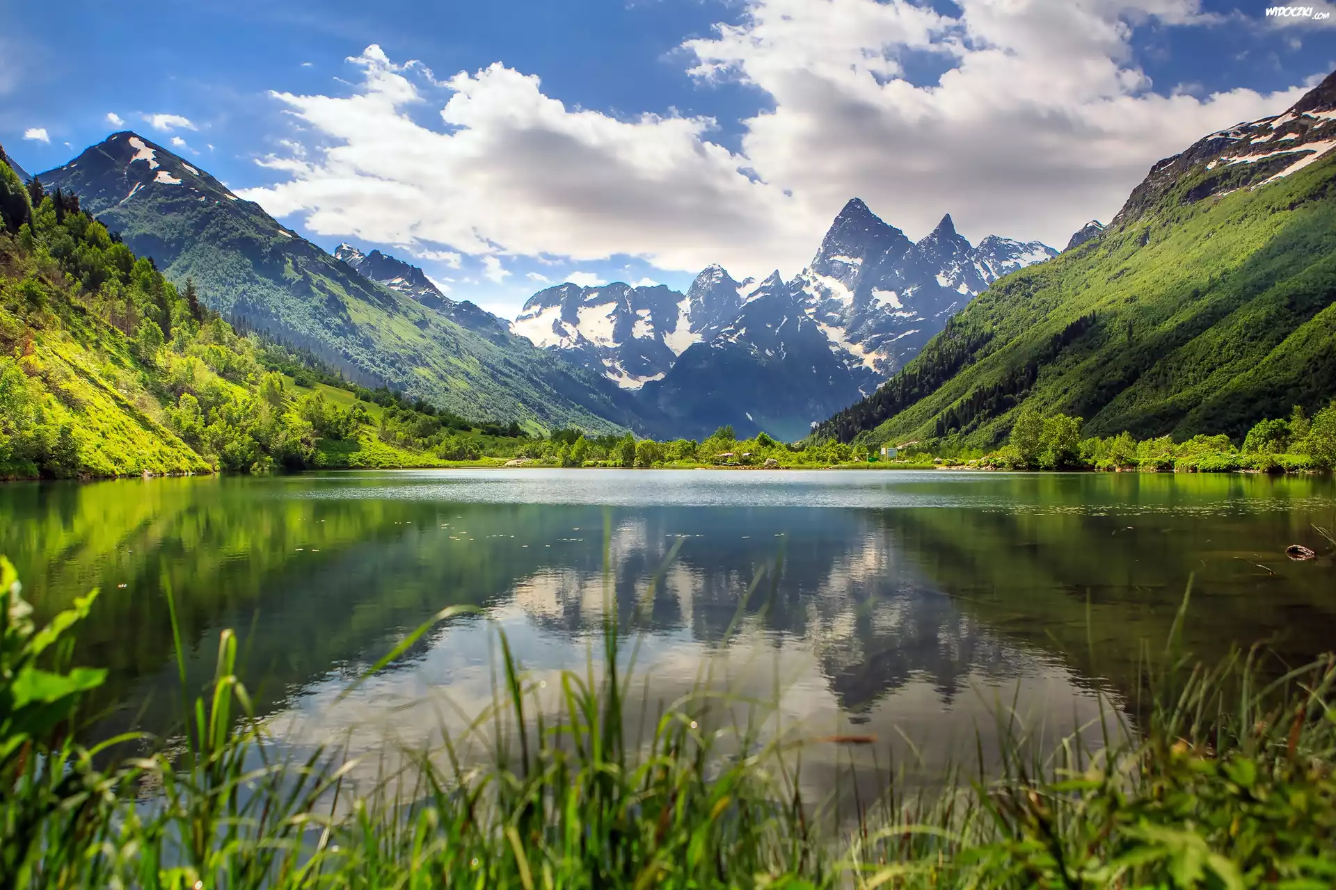 Zdjęcia, Góry, Jezioro, Niebo, Krajobraz
