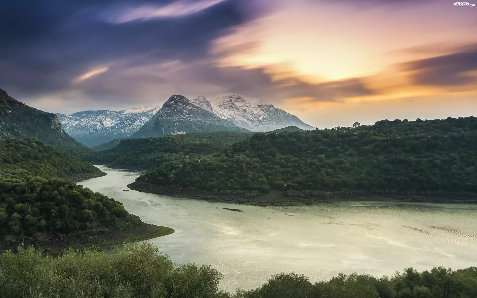 Zdjęcia, Góry, Jezioro, Niebo, Las