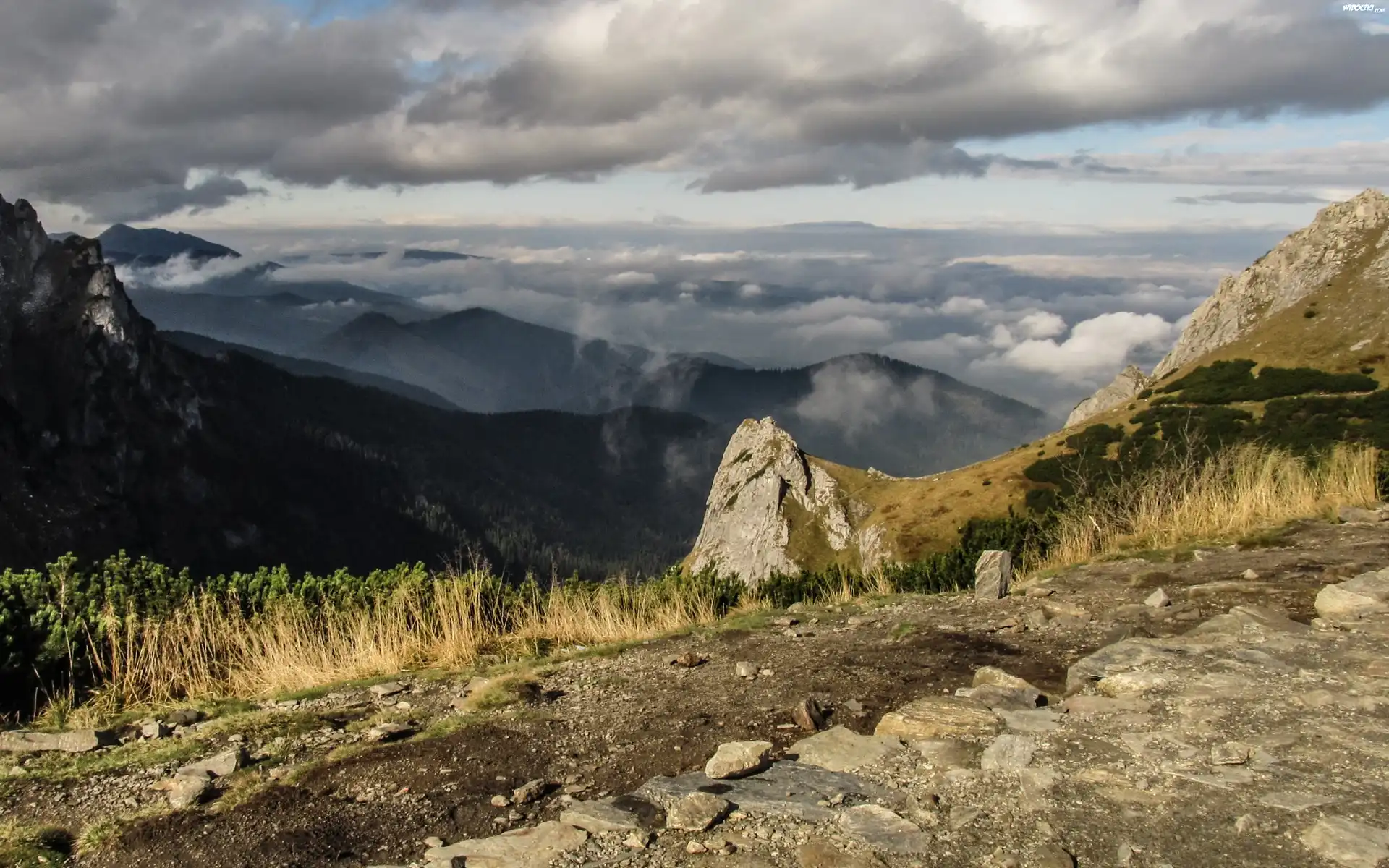 Góry, Kamienie, Niebo, Chmury