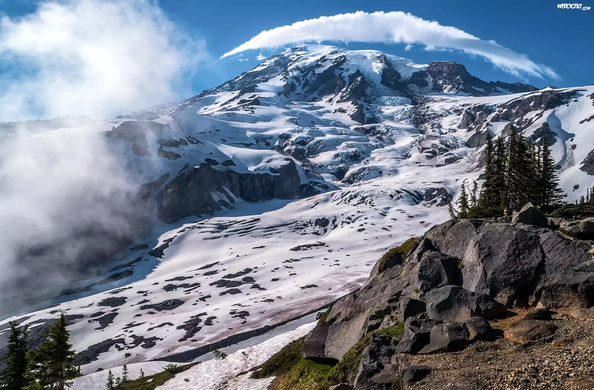 Góry, Kamienie, Śnieg, Drzewa