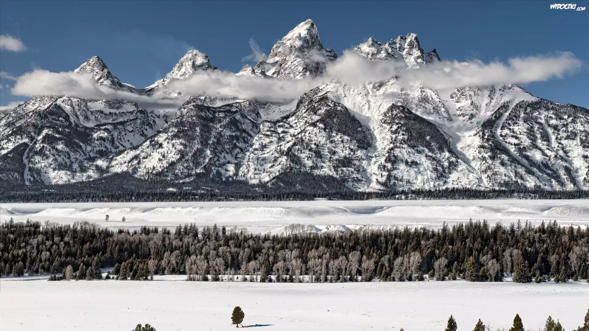Zdjęcia, Góry, Chmury, Las, Śnieg, Zaspy