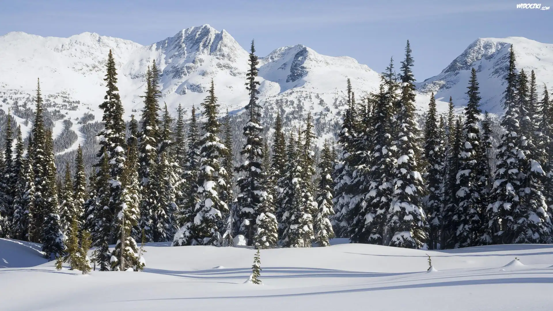 Zdjęcia, Góry, Las, Śnieg, Tajga