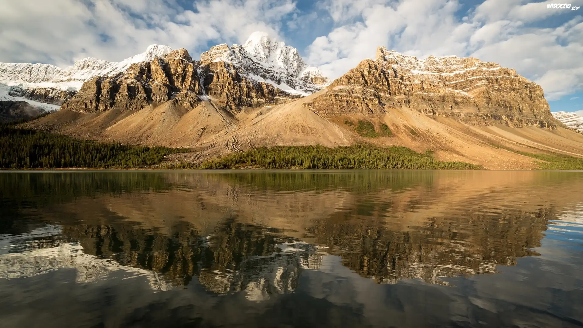 Góry, Jezioro, Lasy, Śnieg, Odbicie