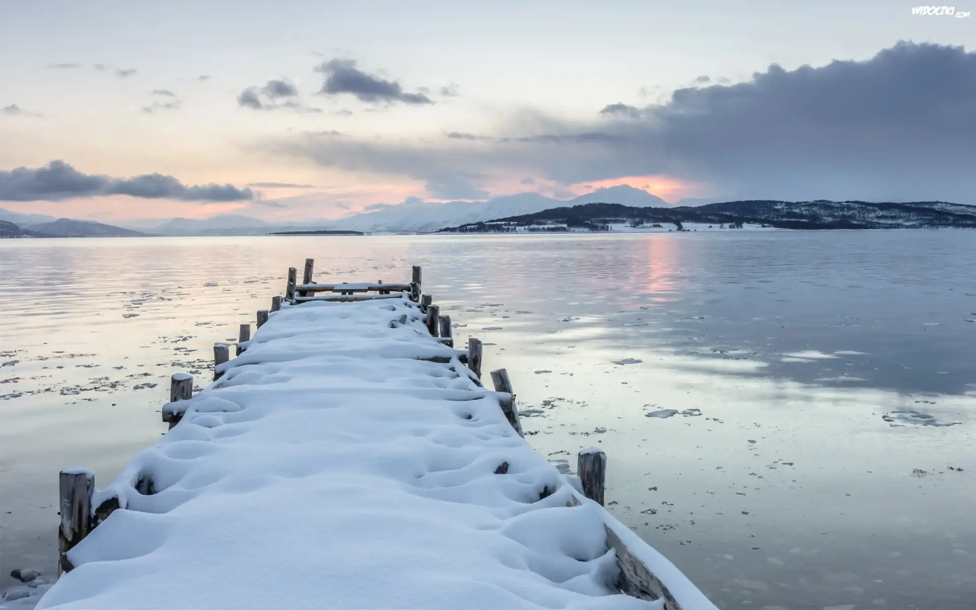 Zdjęcia, Góry, Jezioro, Molo, Śnieg, Zima