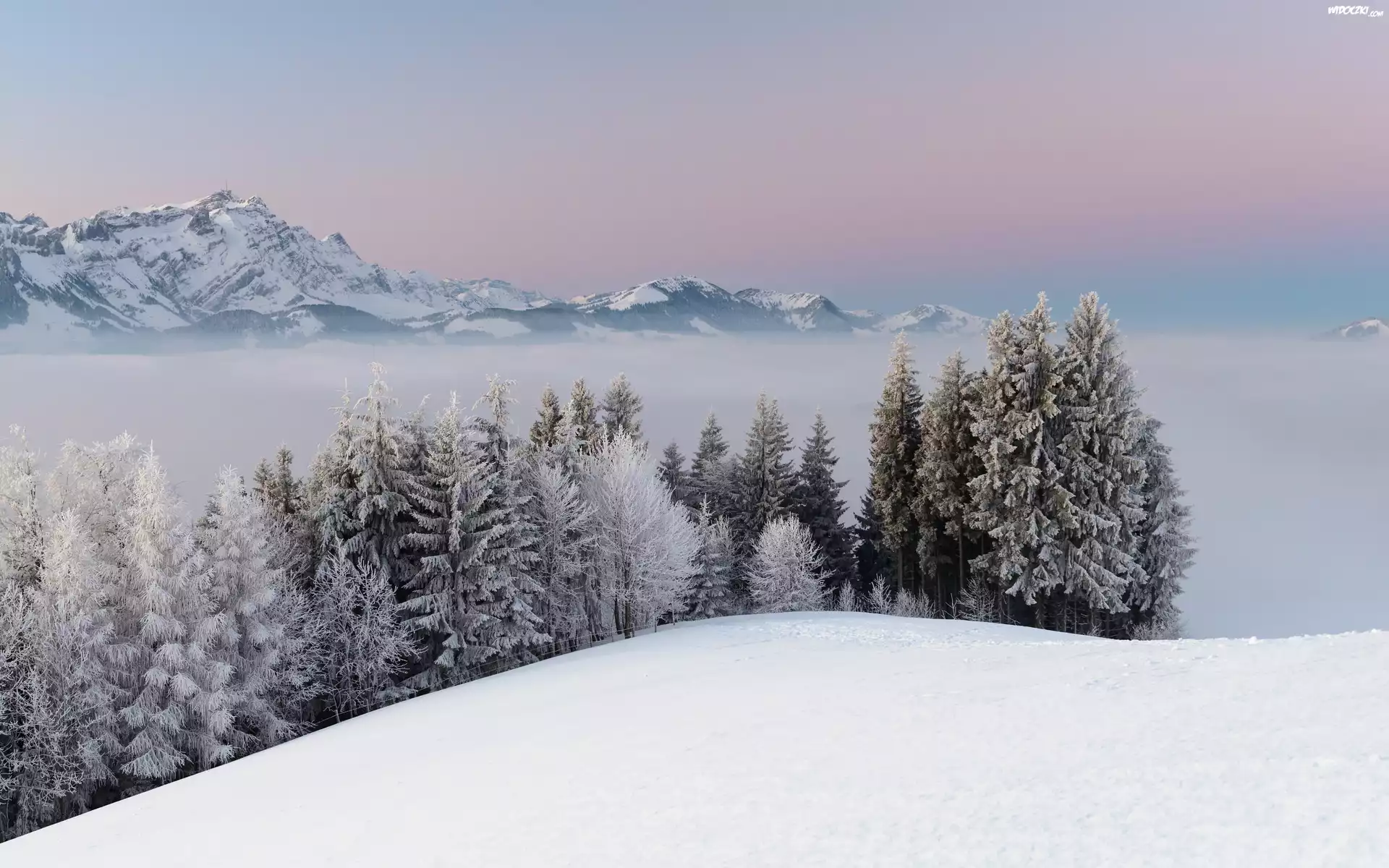 Zdjęcia, Góry, Świerki, Śnieg, Zima
