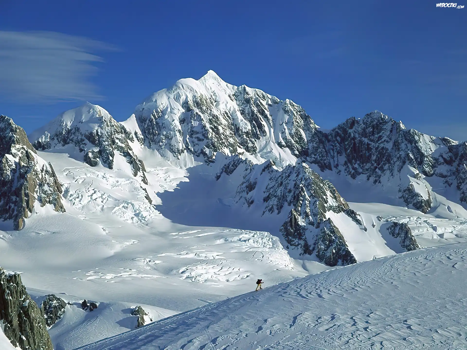 Zdjęcia, Góry, Pokryte, Śniegiem, Człowiek