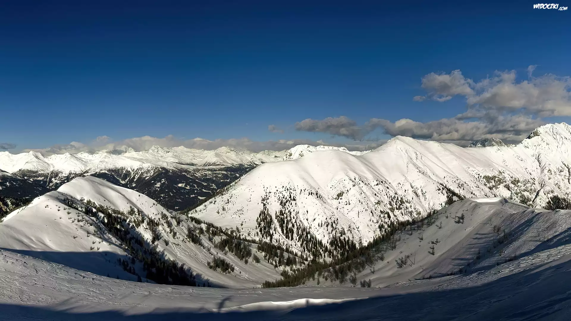 Zdjęcia, Góry, Pokryte, Śniegiem, Stoki