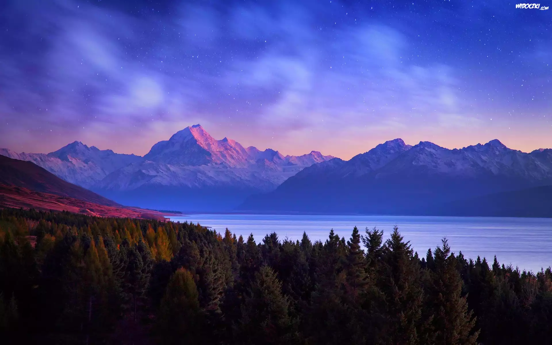 Zdjęcia, Góry, Las, Noc, Jezioro