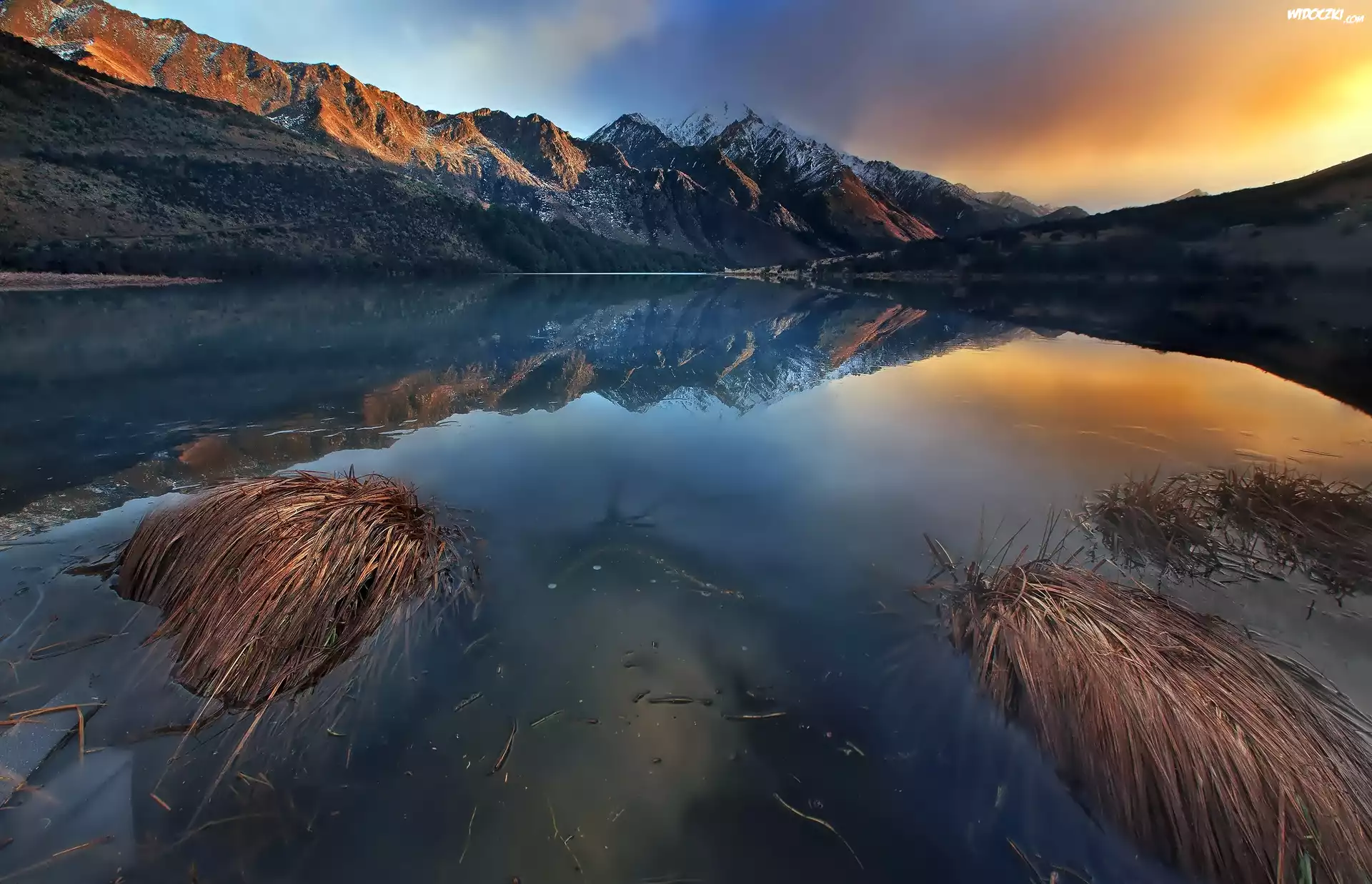 Jezioro, Kamienie, Światła, Miasta Wodospad Góry, urwisko Zachód, Słońca, Jezioro, Krzewy Zachód Słońca, Chmura, Góra Góra Jezioro, Yumiike, Japonia Jezioro, Zatoczka Góra Jezioro, Zielona, Trawa, Drzewa Kanada, Jezioro Vermilion Lakes, Park Narodowy Banff, Góry, Zima Góra, Zima Jezioro, Pomost, Pioruny Góra Góra, Zima