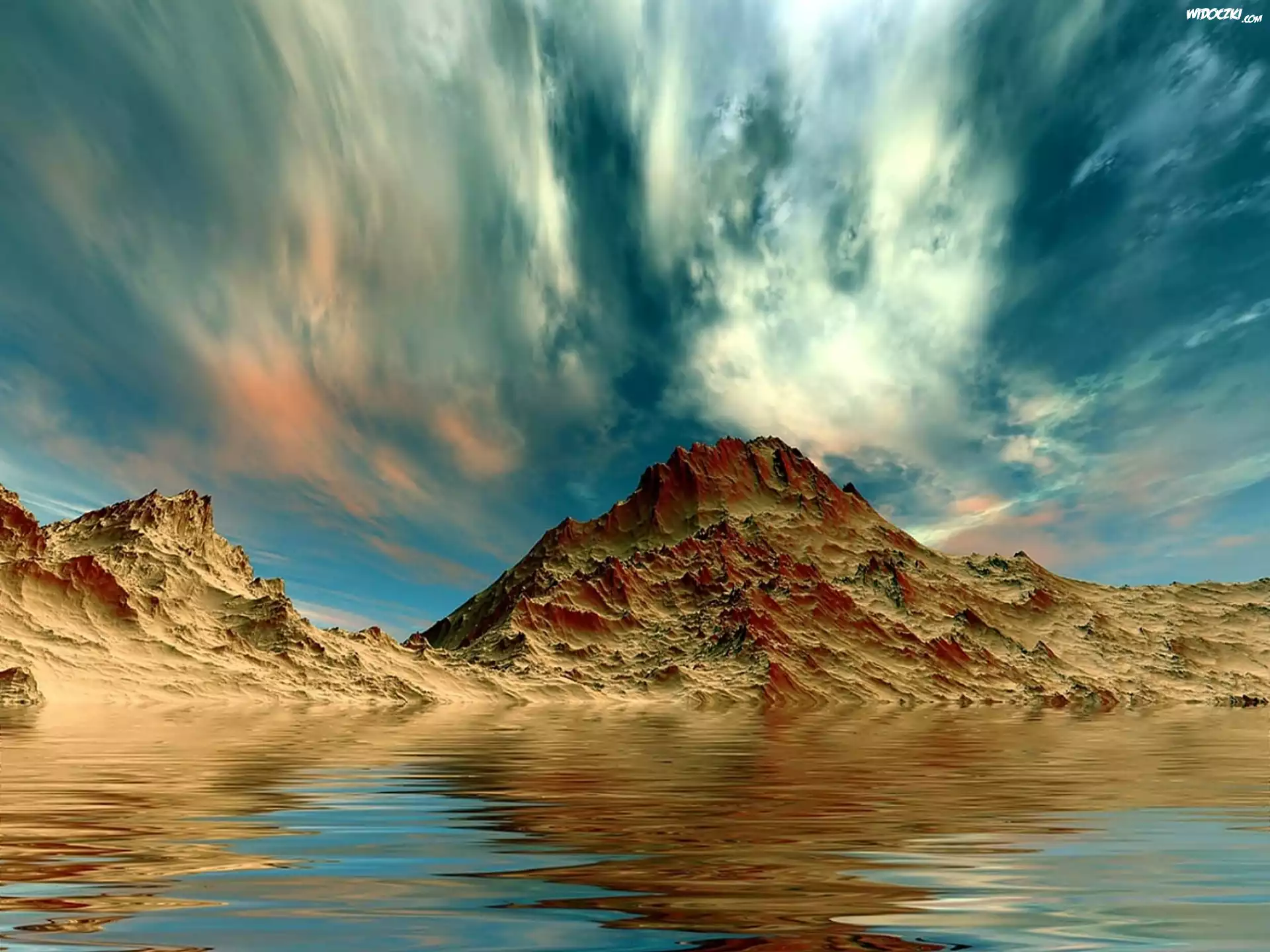 Zdjęcia, Góry, Morze, Obłoki, Odbicie