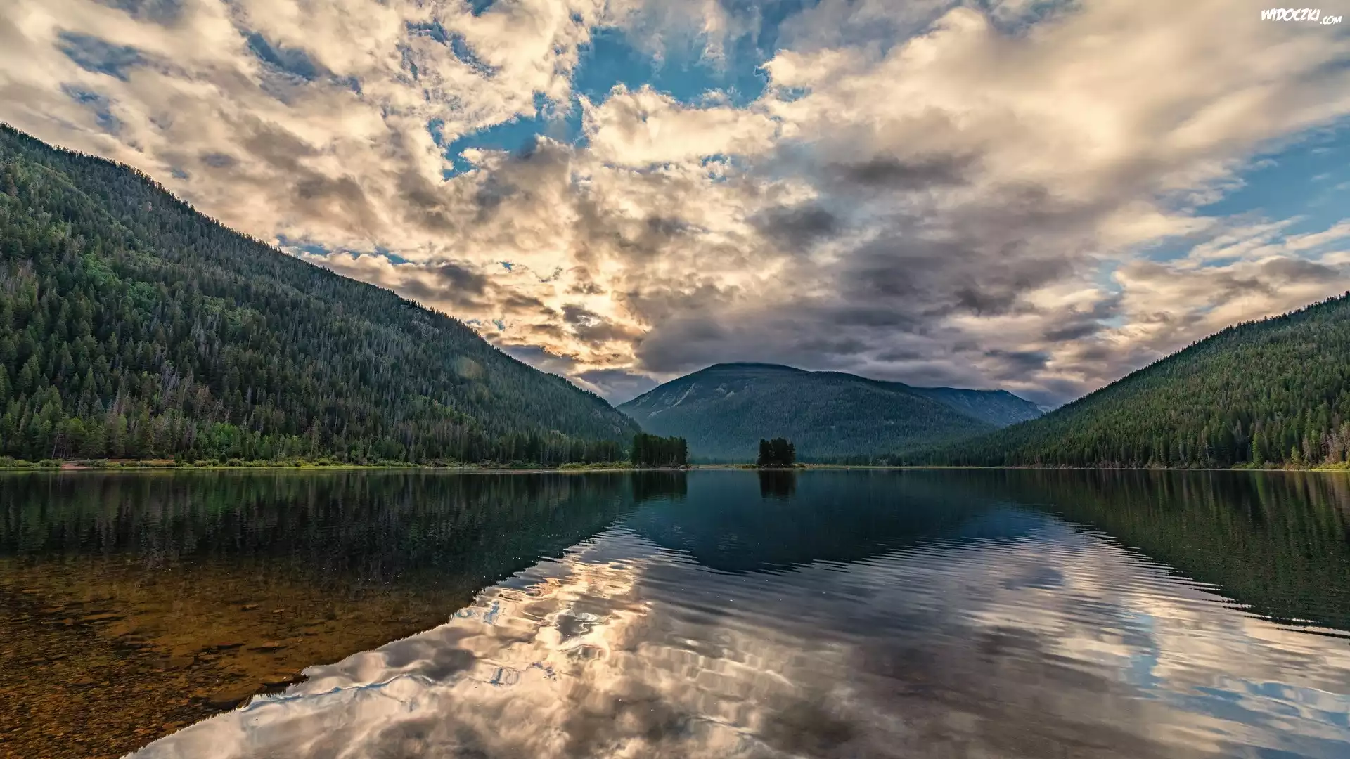 Zdjęcia, Góry, Jezioro, Drzewa, Niebo, Odbicie, Chmura
