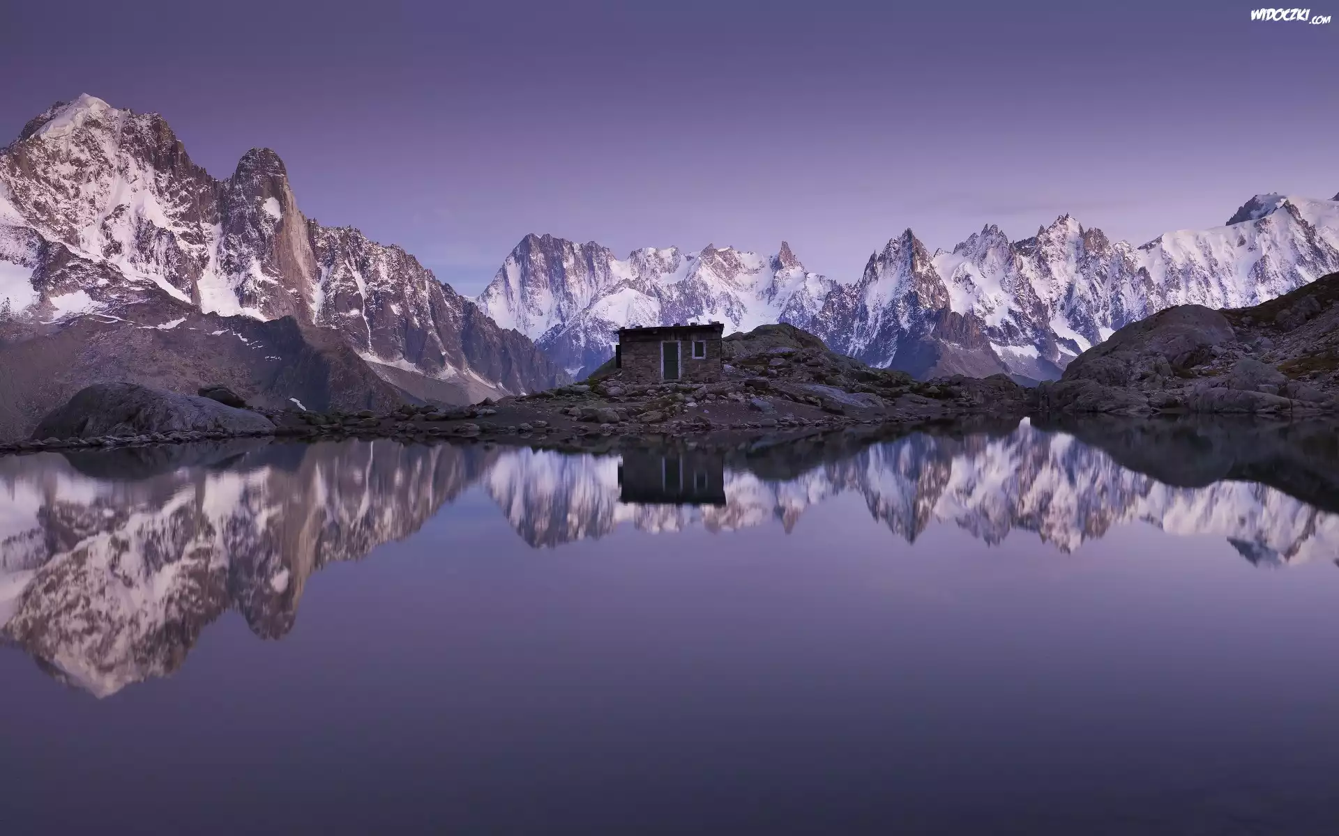 Zdjęcia, Góry, Jezioro, Odbicie, Chata