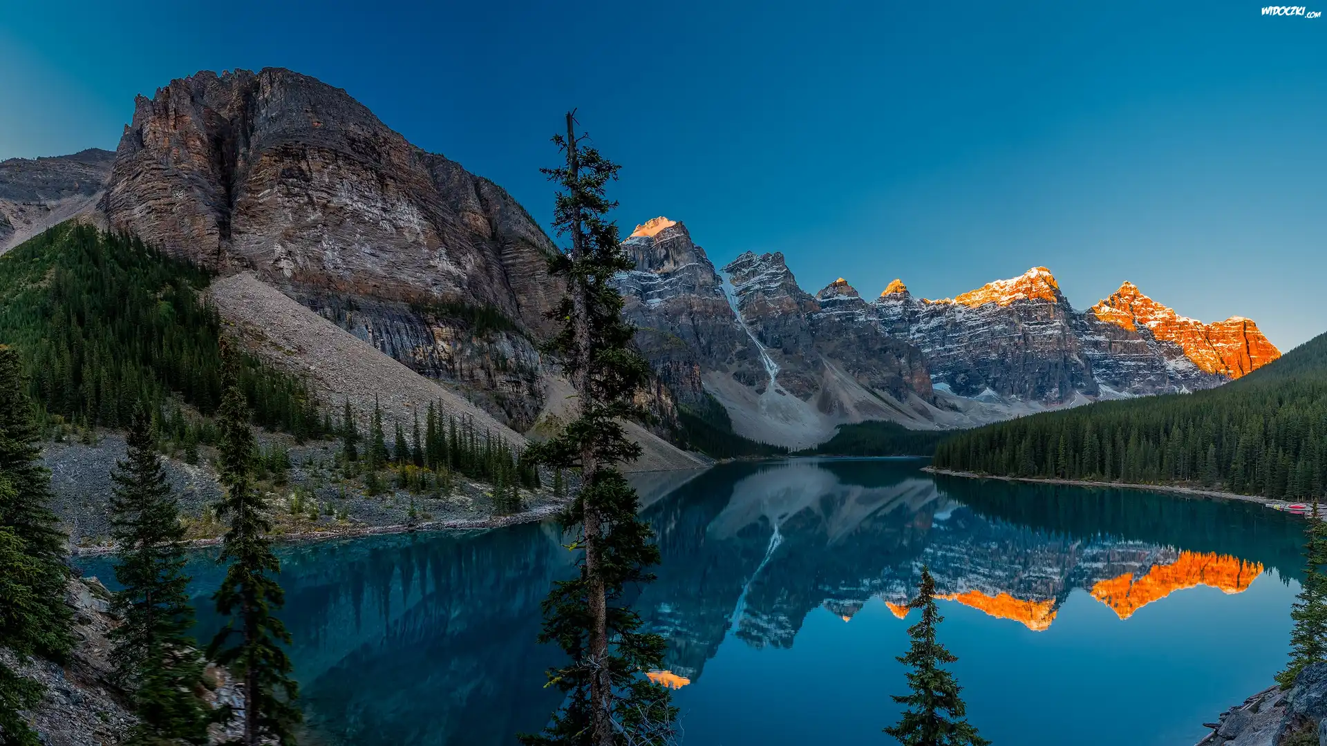 Góry, Jezioro, Odbicie, Drzewa
