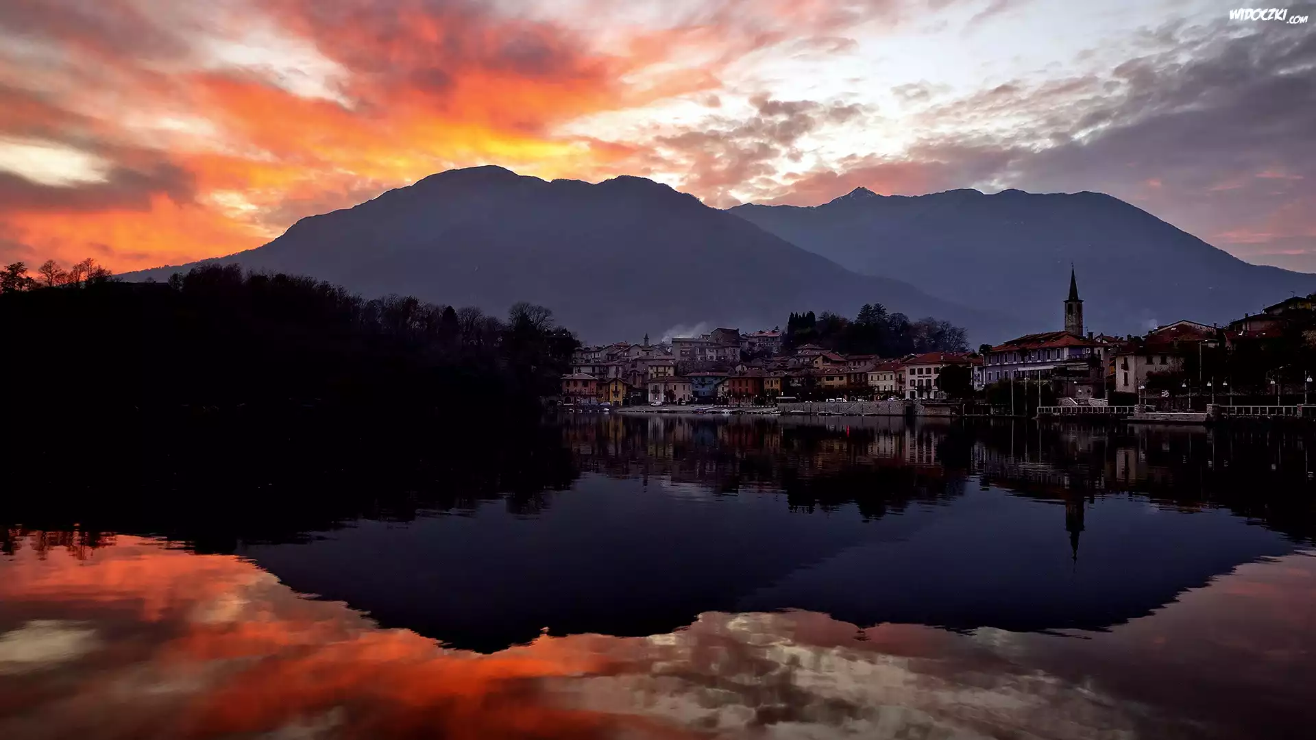 Zdjęcia, Góry, Jezioro, Miasto, Odbicie, Lustrzane