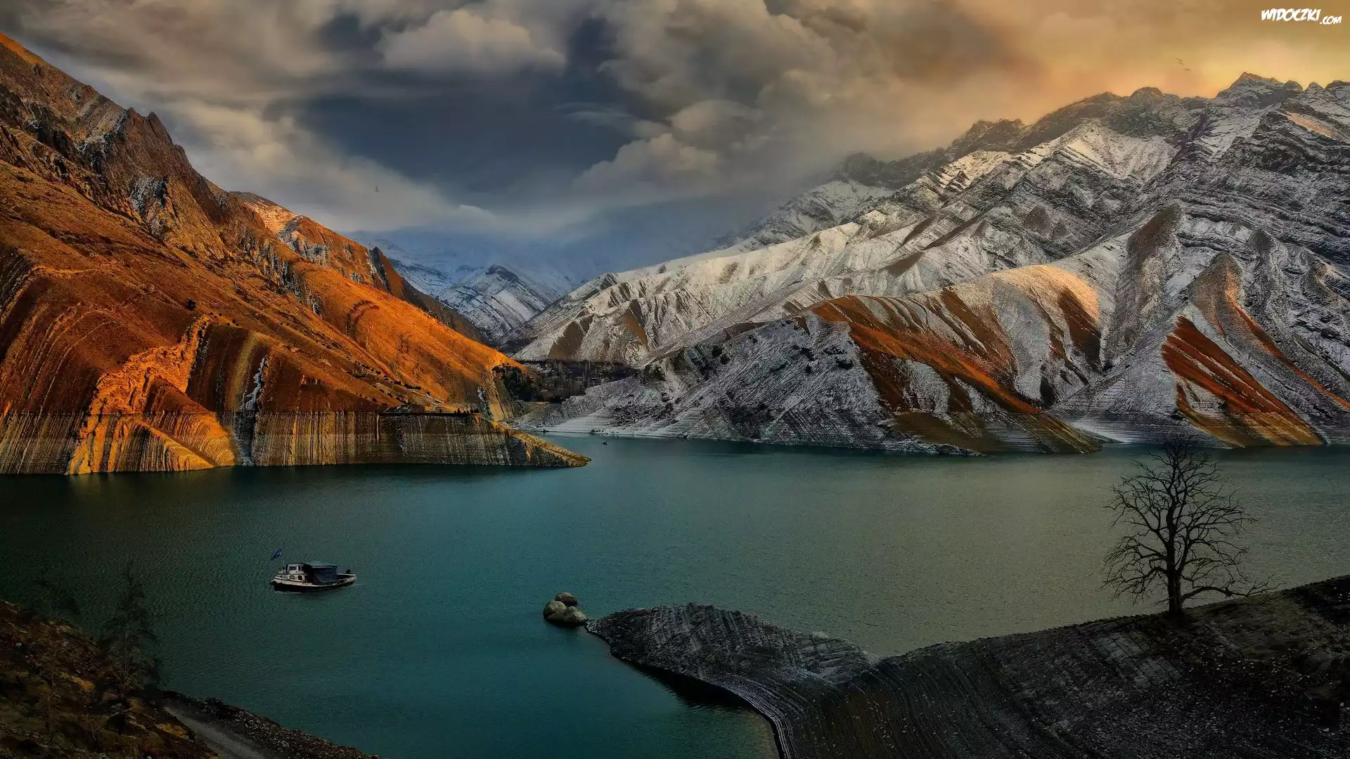 Zdjęcia, Góry, Jezioro, Łódka, Chmury