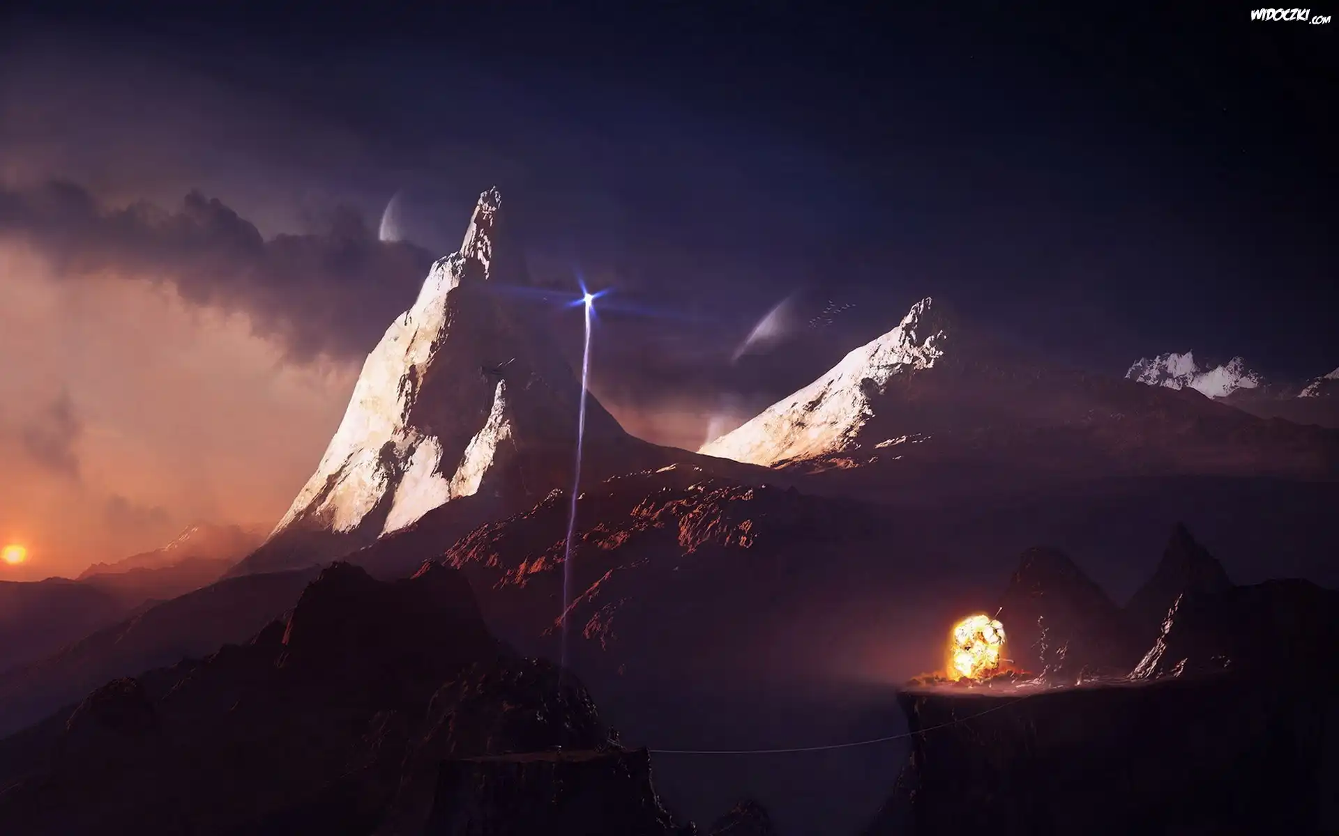 Góry, Wysokość, Śnieg, Ogień, Słońce