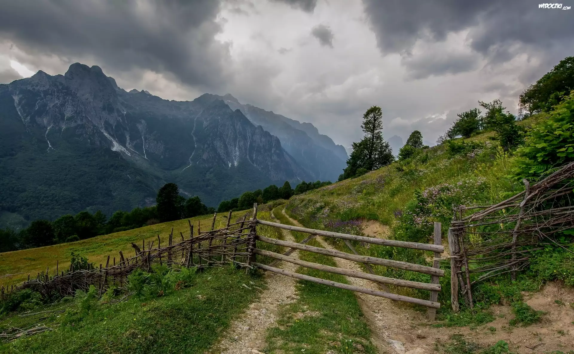 Zdjęcia, Góry, Łąka, Drzewa, Ogrodzenie, Droga