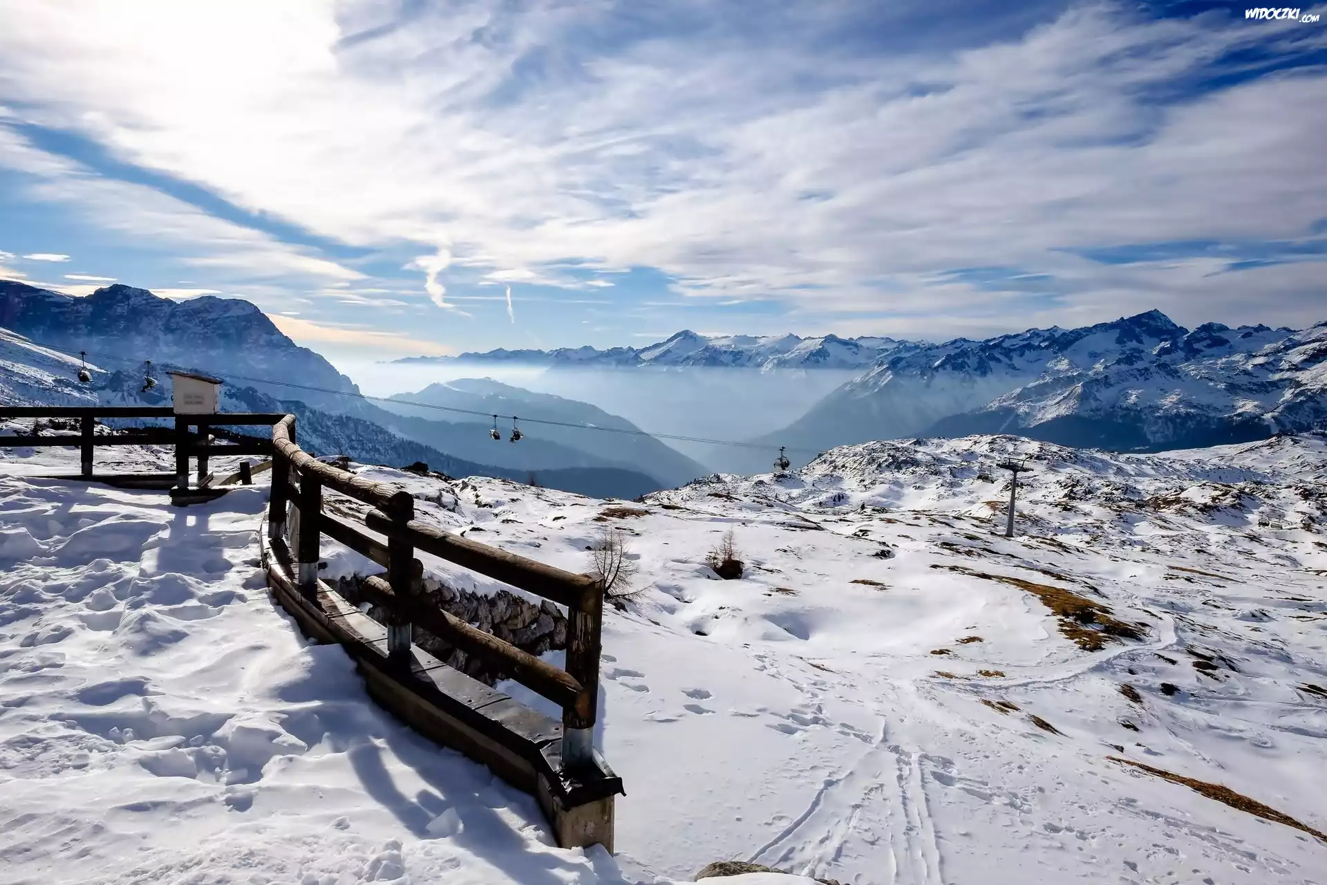 Zdjęcia, Góry, Wyciąg narciarski, Ogrodzenie, Zima
