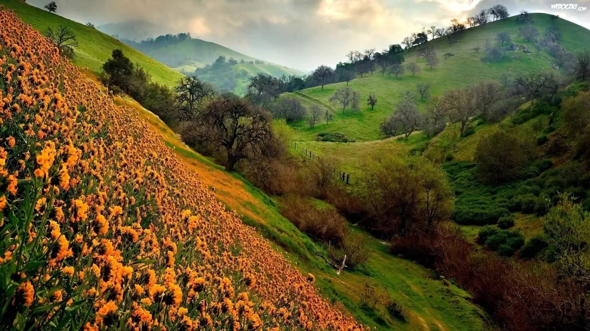Góry, Łąka, Żółte, Kwiaty