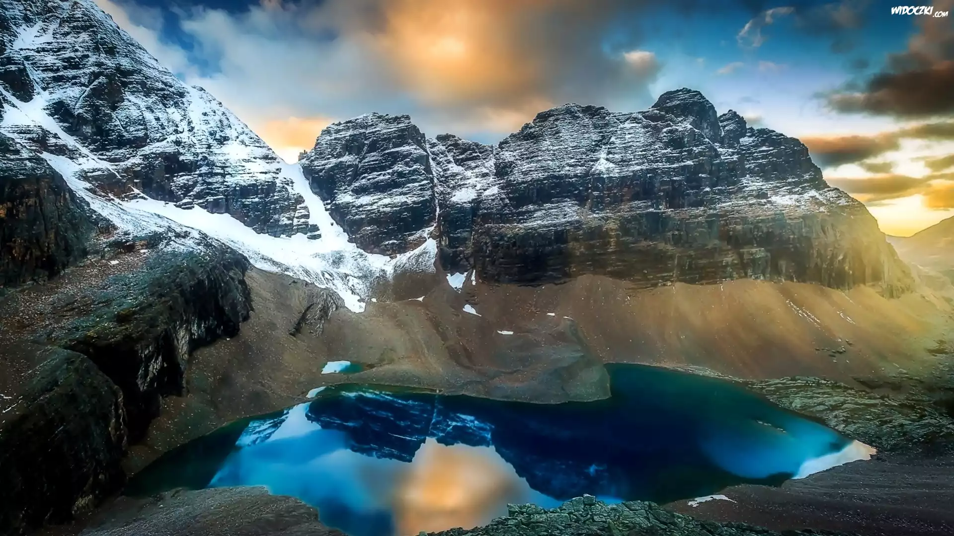 Wodospad Góry, urwisko Góry, Drzewa, Jezioro Jezioro, Kamienie, Zachód, Słońca Góra, Rzeki, Most Góra, Jeziora Kanada, Jezioro, Las Koń, Jezioro, Chmury Góra, Zima Góra, Jeziora Góra Góra, Rzeki Góra Dziwna Góra Bożków, Jezioro