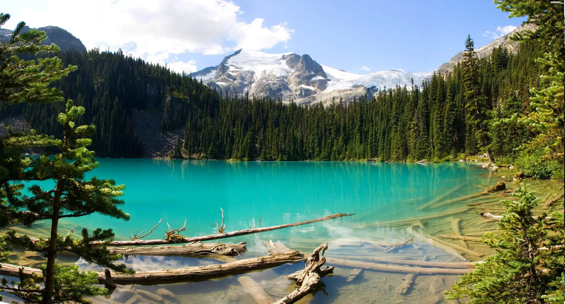 Góry, Las, Jezioro, Ośnieżone szczyty