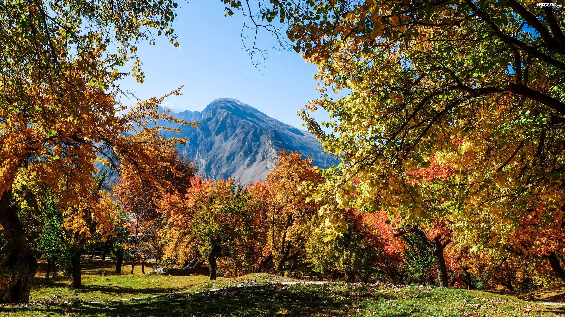 Zdjęcia, Drzewa, Góry Karakorum, Park, Jesień, Gilgit-Baltistan, Pakistan