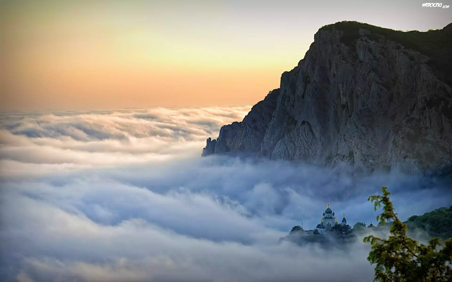 Zdjęcia, Góry, Chmury, Pałac, Drzewo
