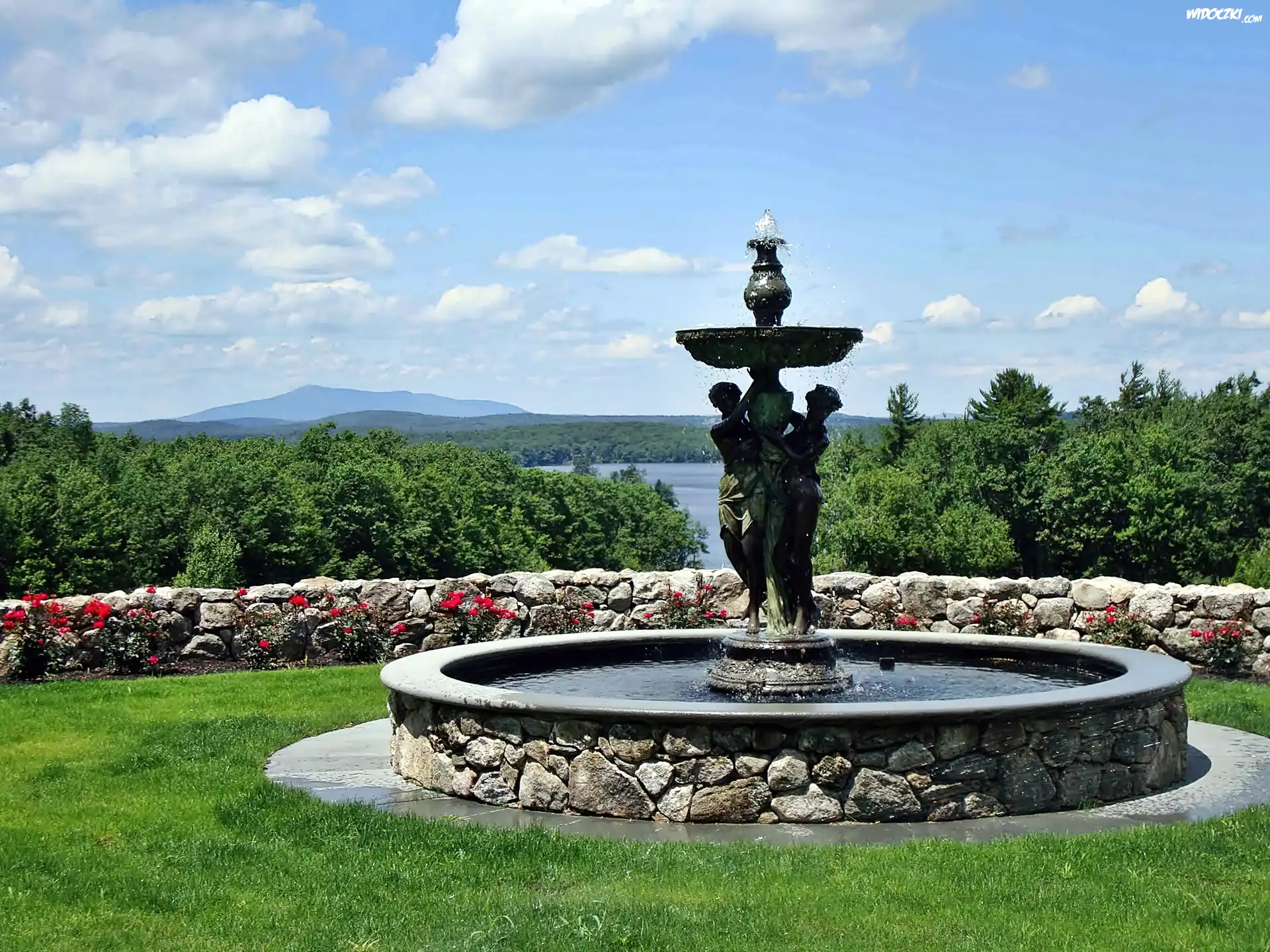 Zdjęcia, Góry, Lasy, Jezioro, Park, Fontanna