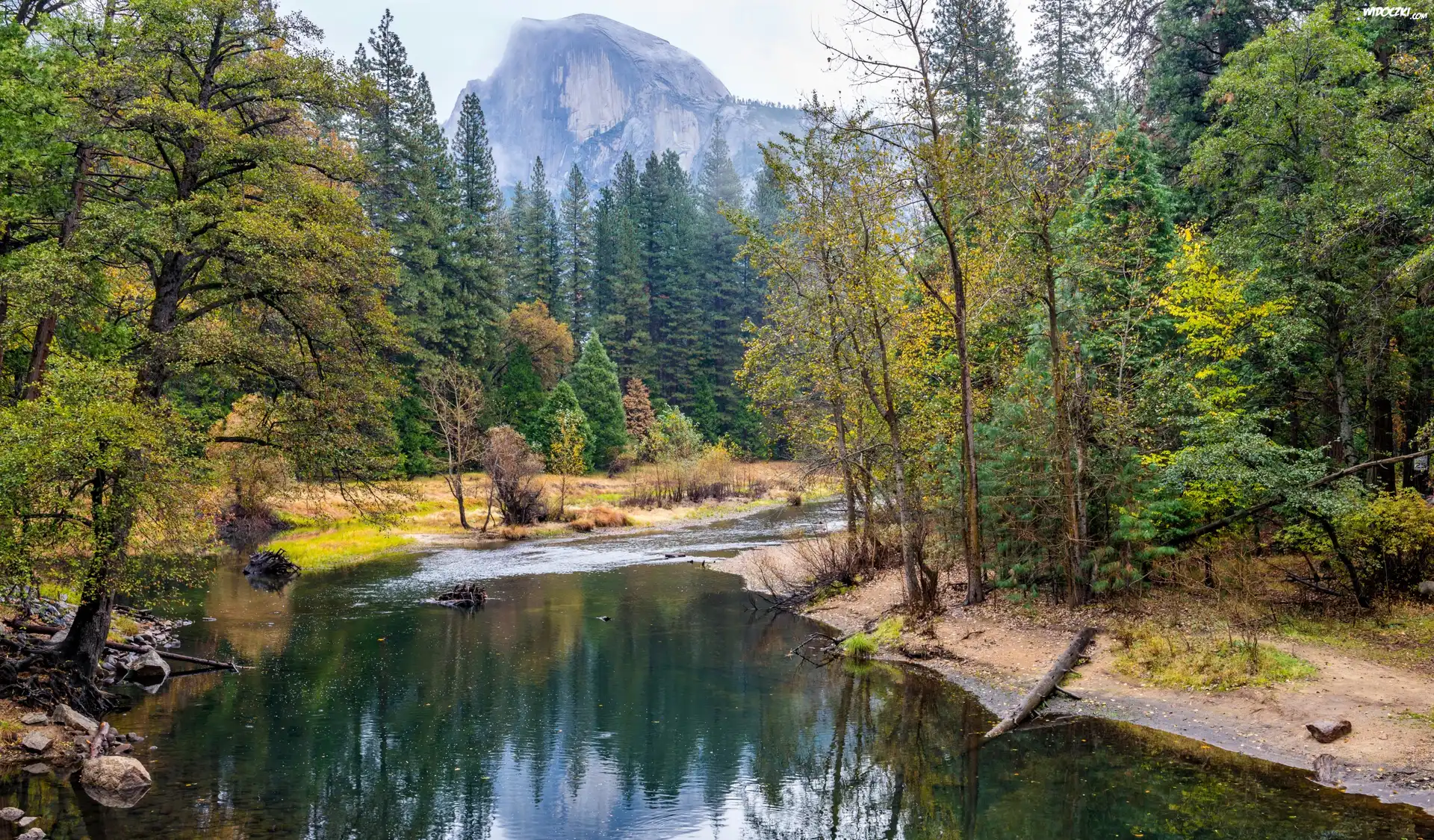 Stany Zjednoczone, Stan Kalifornia, Park Narodowy Yosemite, Las, Rzeka, Góry