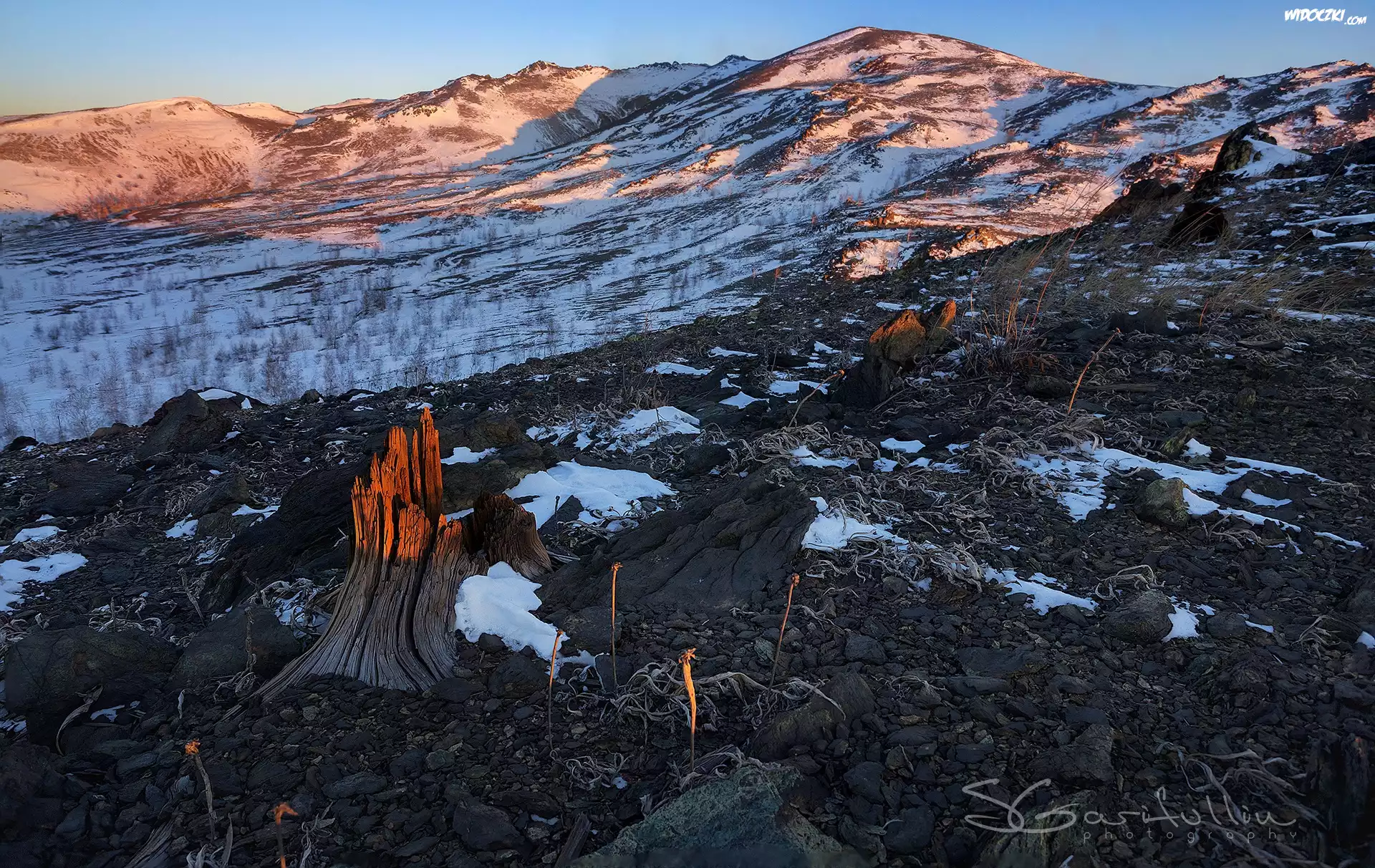 Zdjęcia, Góry, Śnieg, Kamienie, Pień, Drzewa