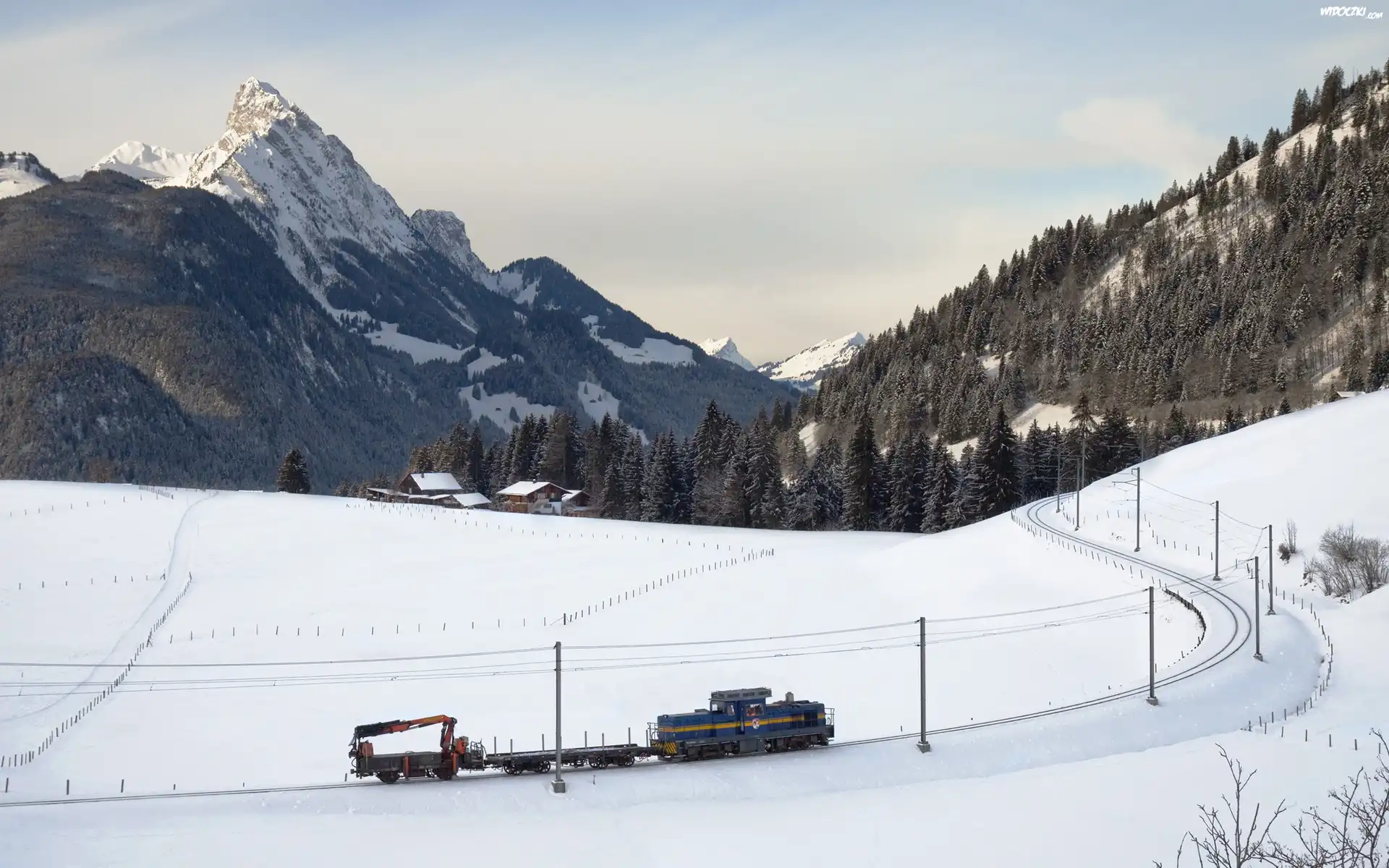 Zdjęcia, Góry, Lasy, Osada, Pociąg, Zima