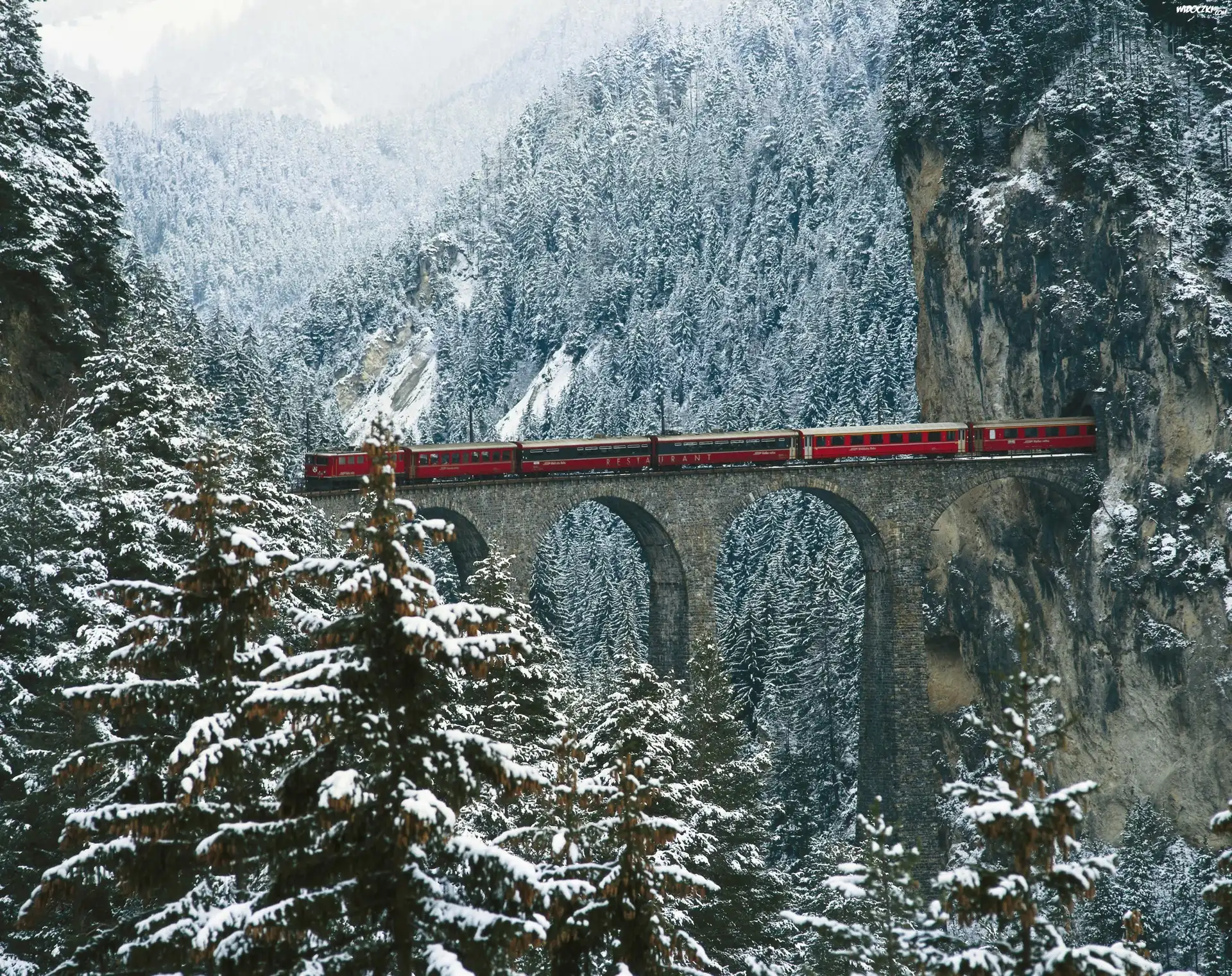 Zdjęcia, Góry, Las, Tunel, Pociąg, Zima