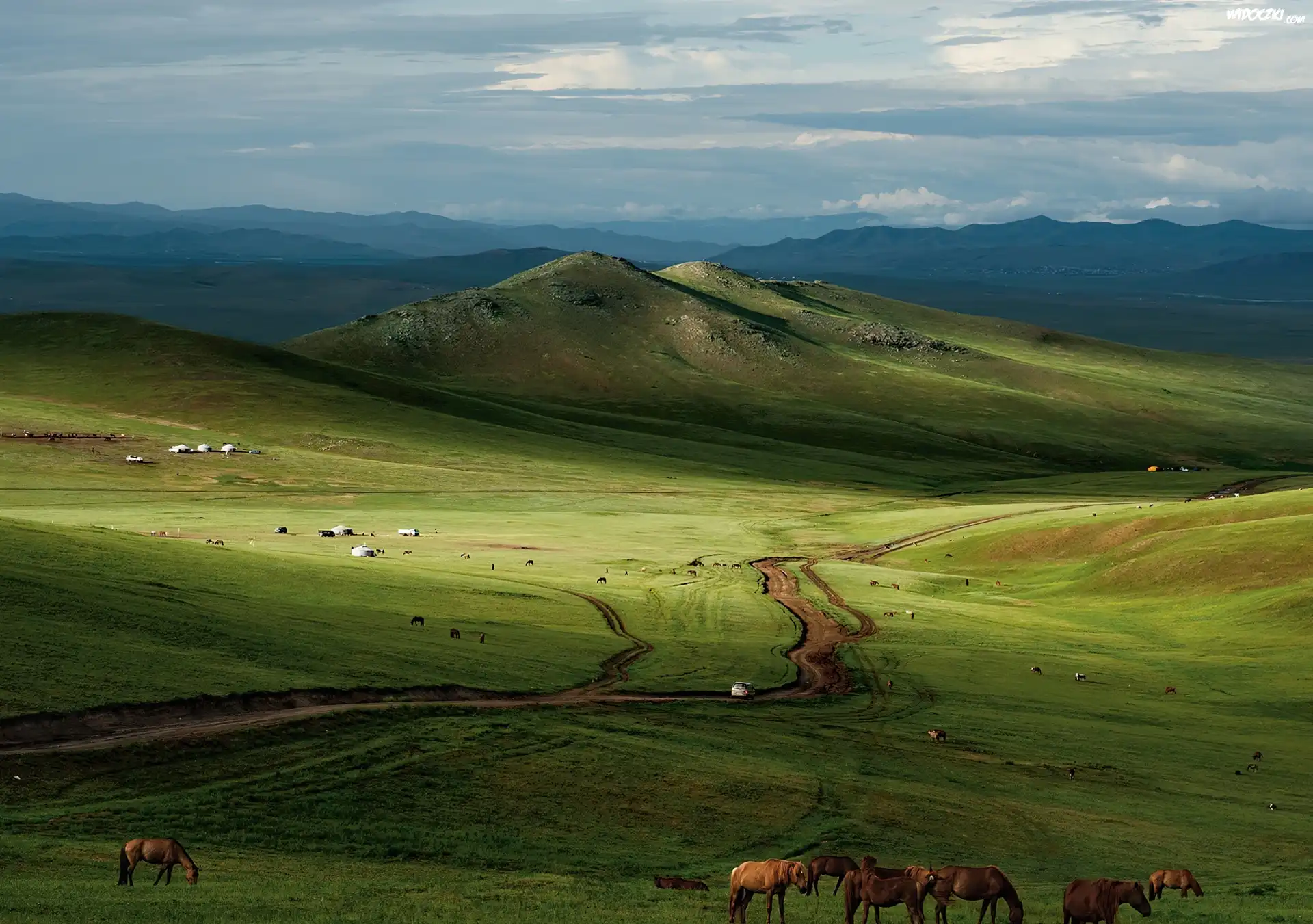 Zdjęcia, Góry, Łąki, Pola, Konie