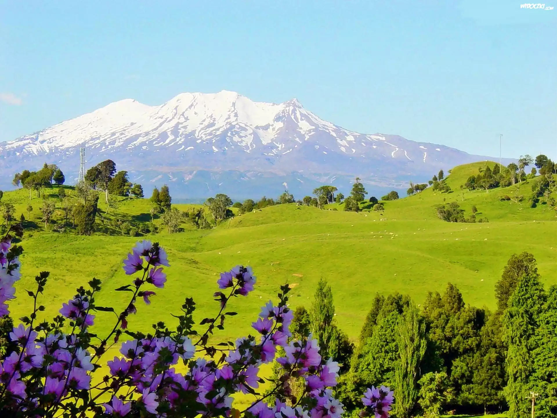 Zdjęcia, Góry, Łąki, Drzewa, Polne, Kwiaty