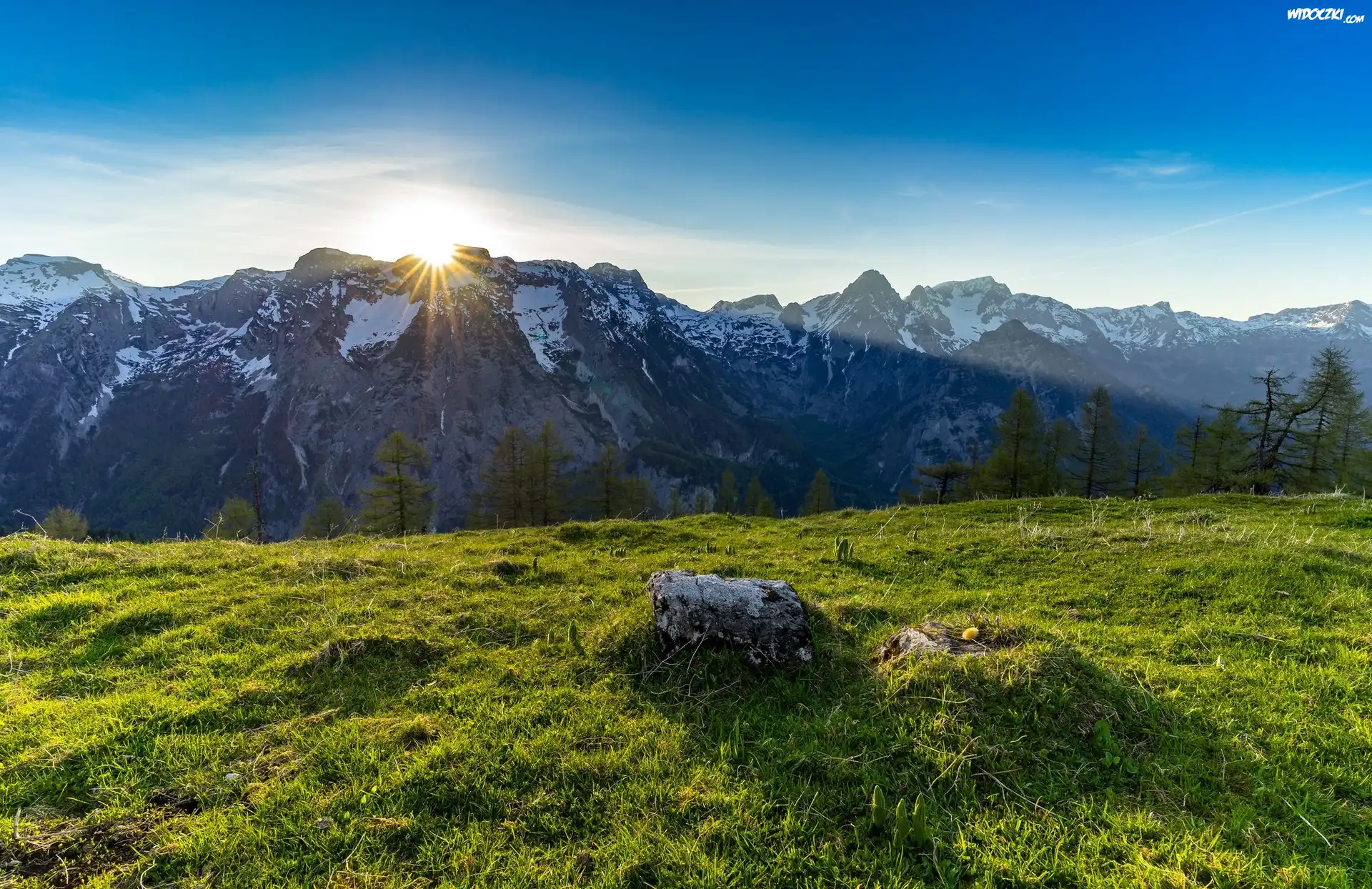 Zdjęcia, Góry, Łąka, Promienie słońca