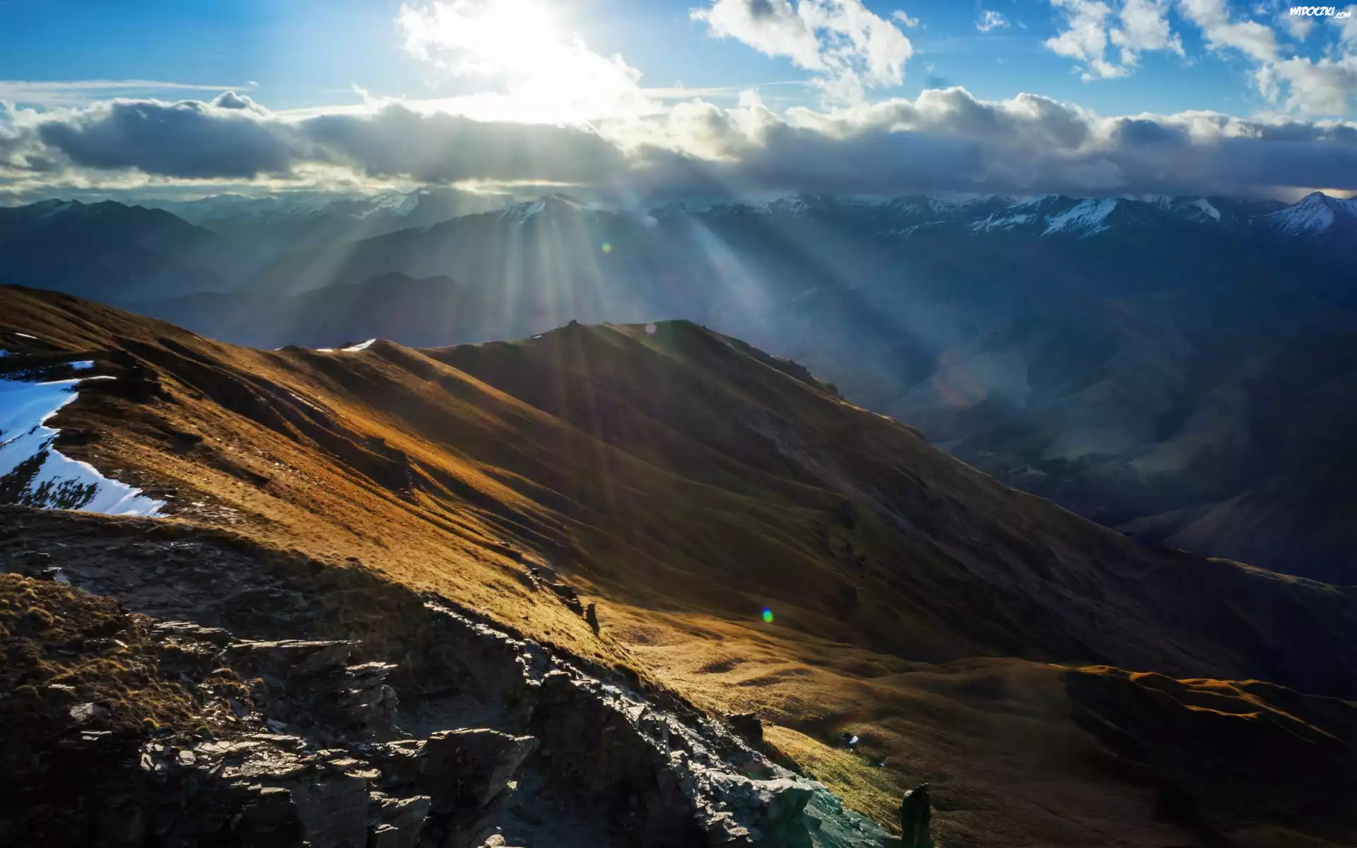Zdjęcia, Góry, Chmury, Promienie słońca