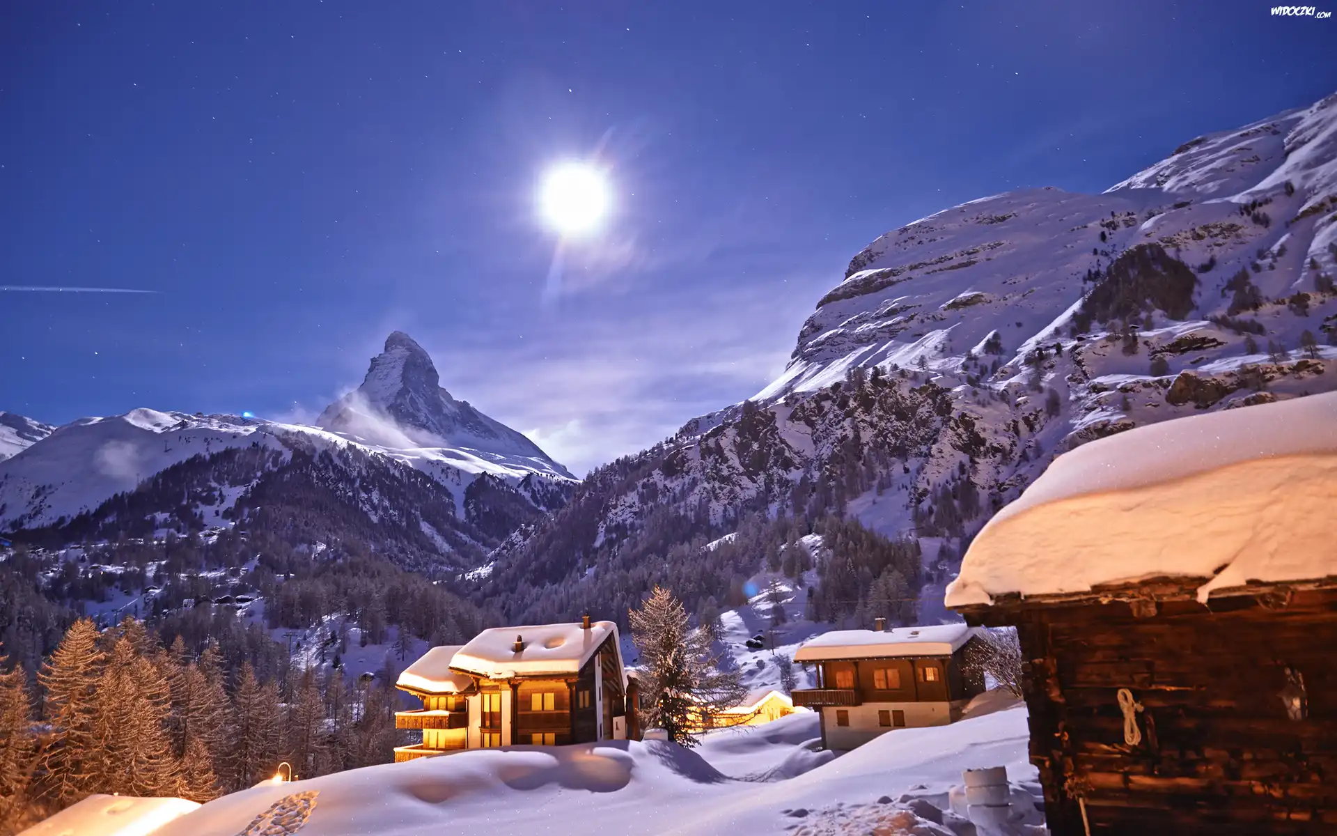 Zdjęcia, Góry, Zima, Domy, Promienie słońca