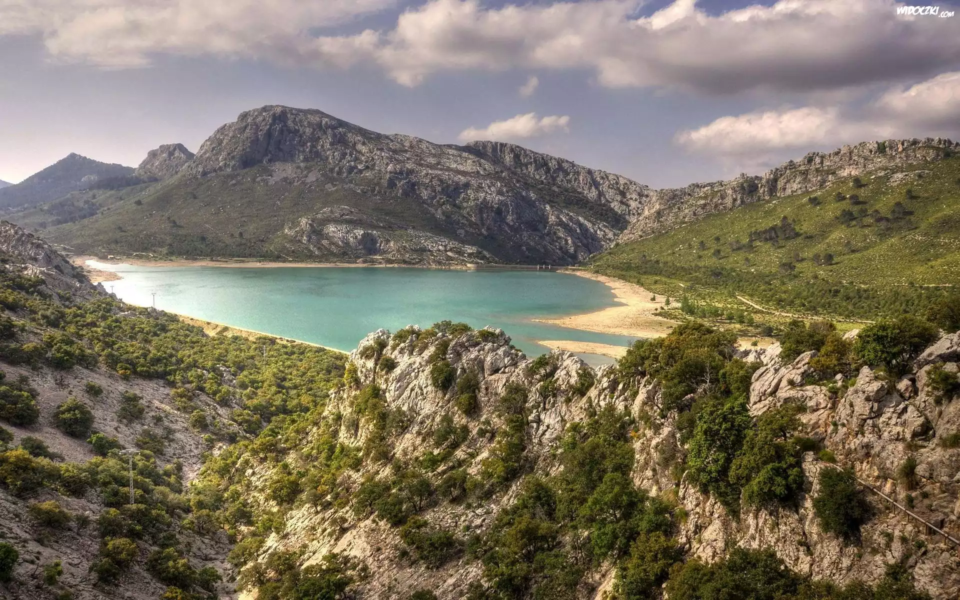 Zdjęcia, Góry, Jezioro, Roślinność, Chmury