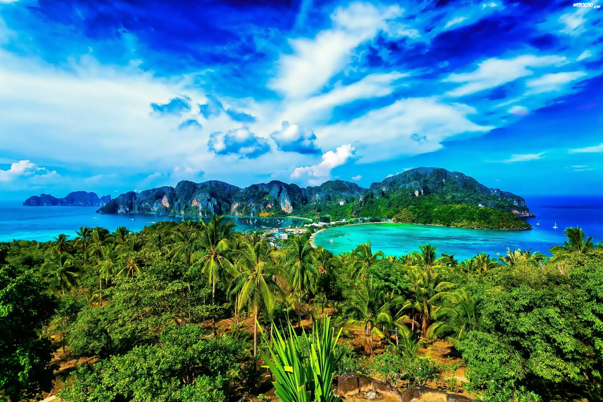 Zdjęcia, Góry, Morze, Roślinność, Tajlandia