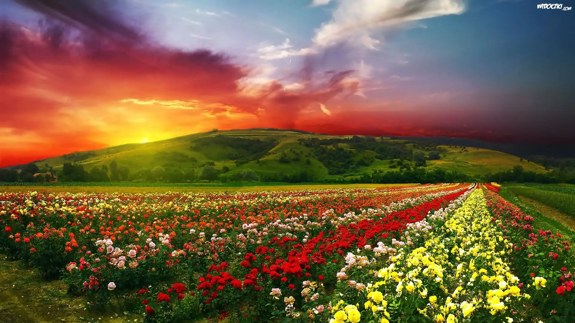 Zdjęcia, Góry, Zachód, Słońca, Kolorowe, Róże, Uprawa