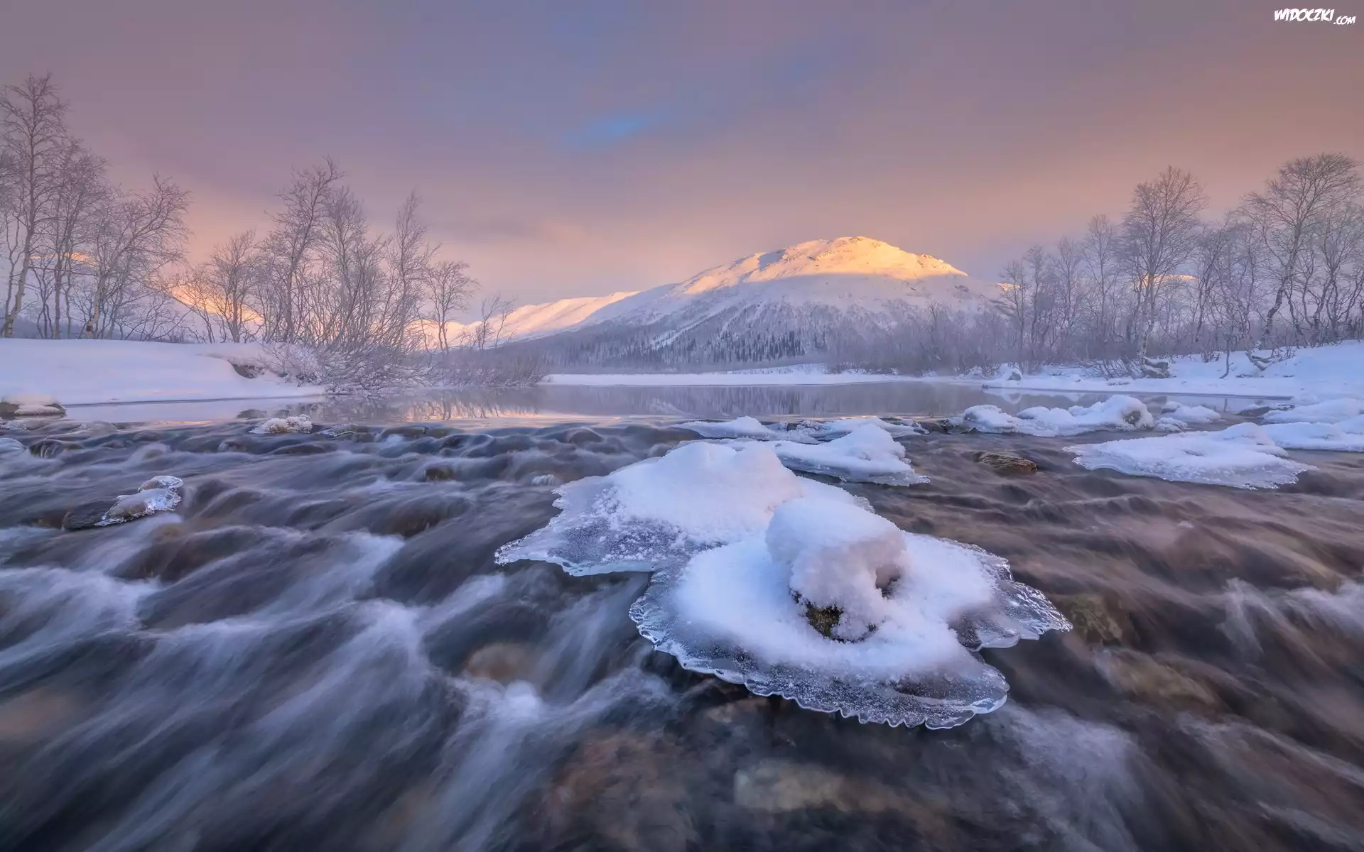 Zima, Góry, Rwąca, Rzeka, Drzewa