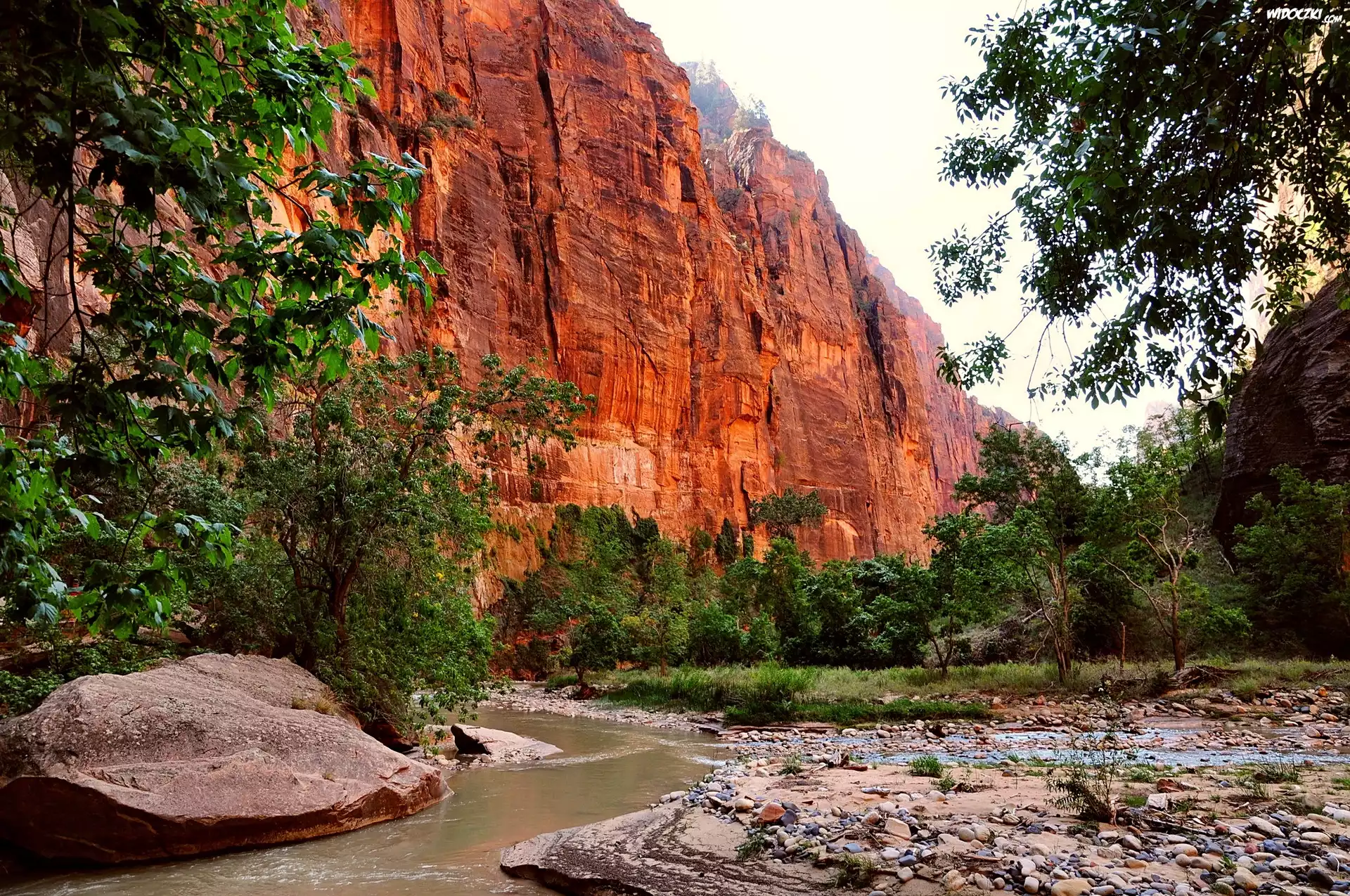 Zdjęcia, Góry, Drzewa, Rzeczka, Kamienie