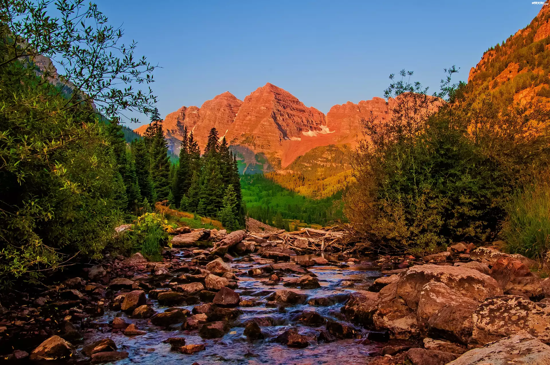 Zdjęcia, Góry, Drzewa, Rzeczka, Kamienie