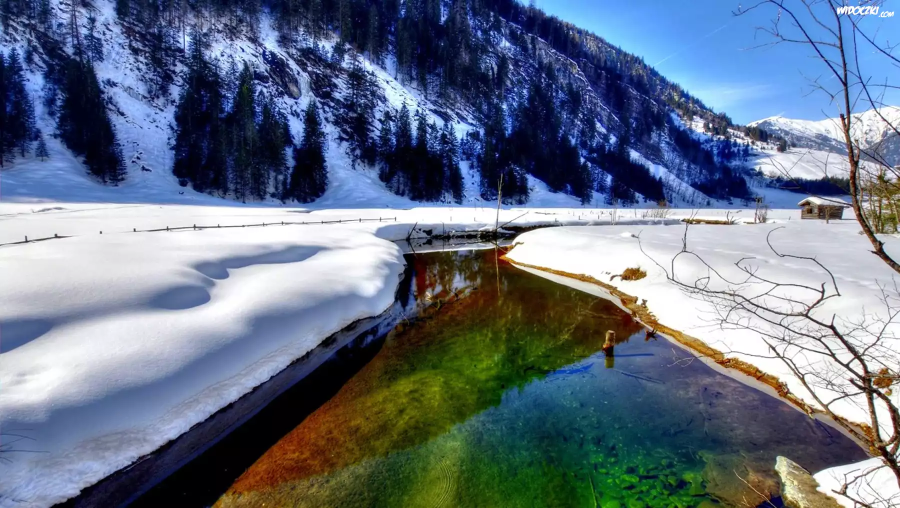 Góry, Kolorowa, Rzeka, Śnieg